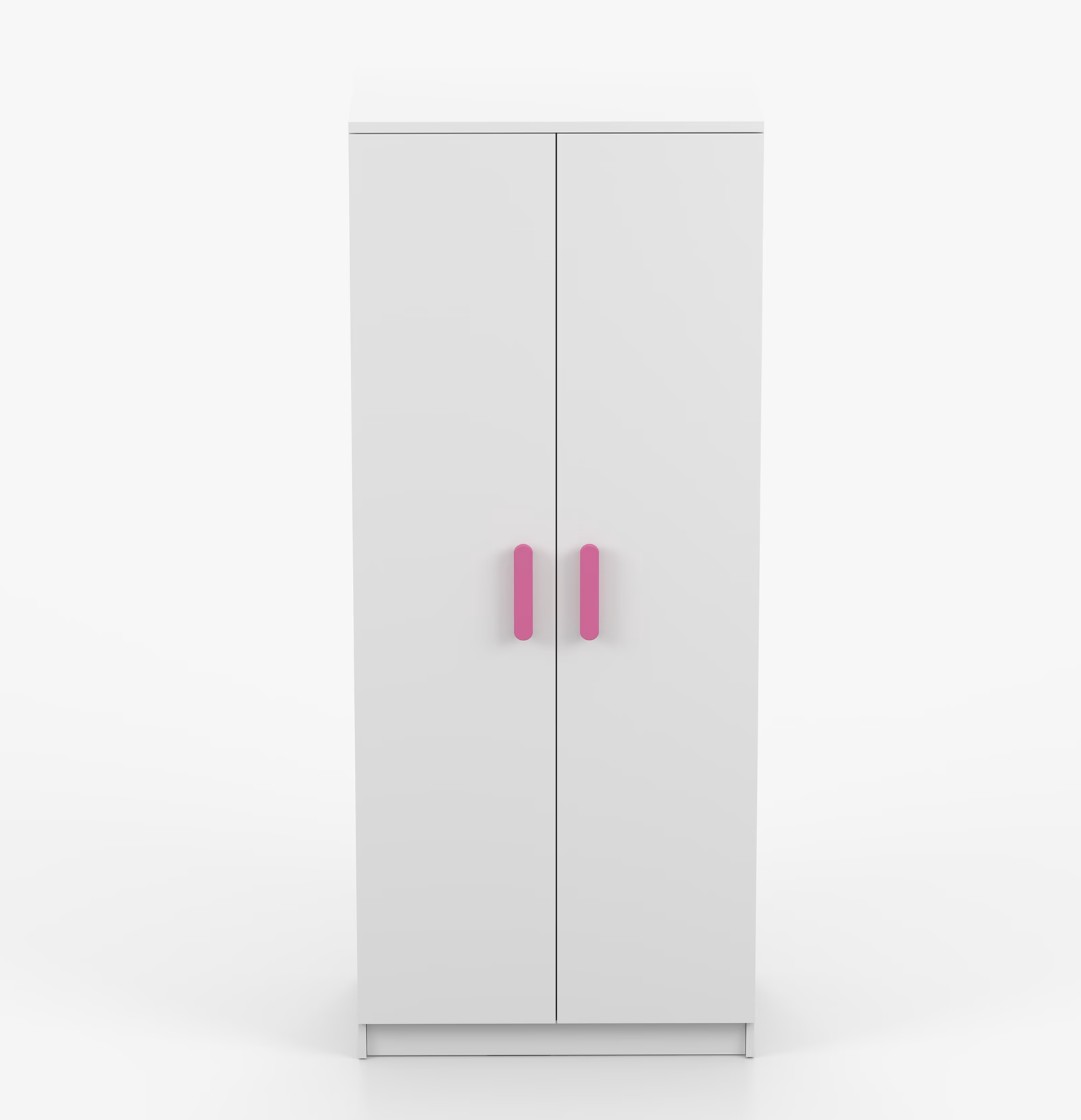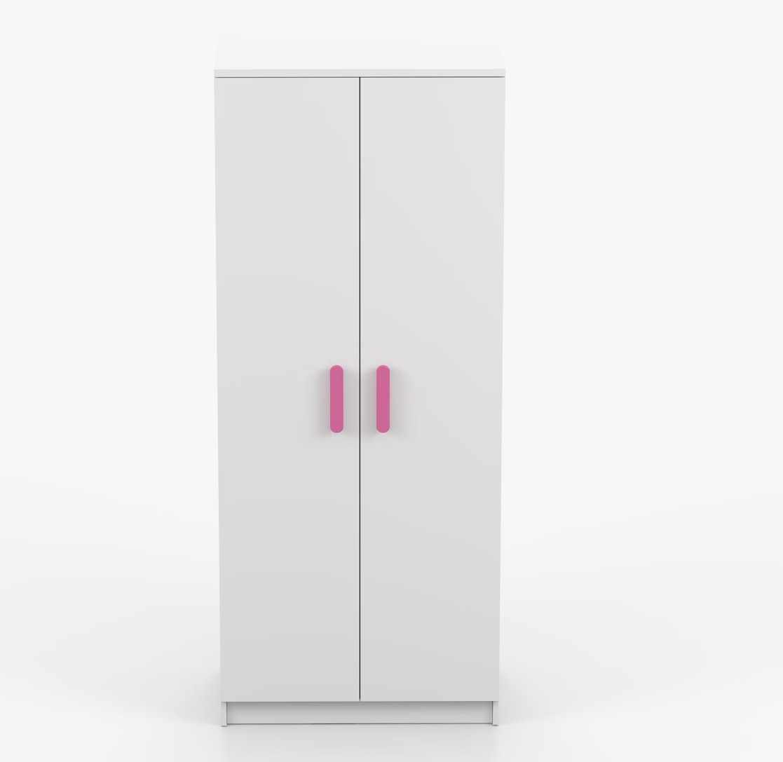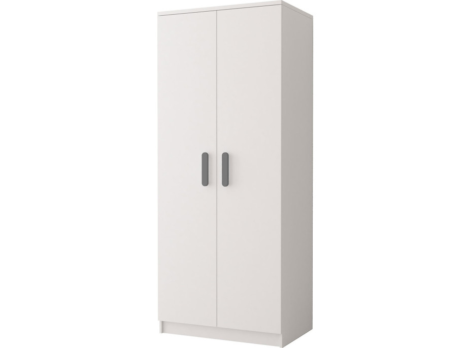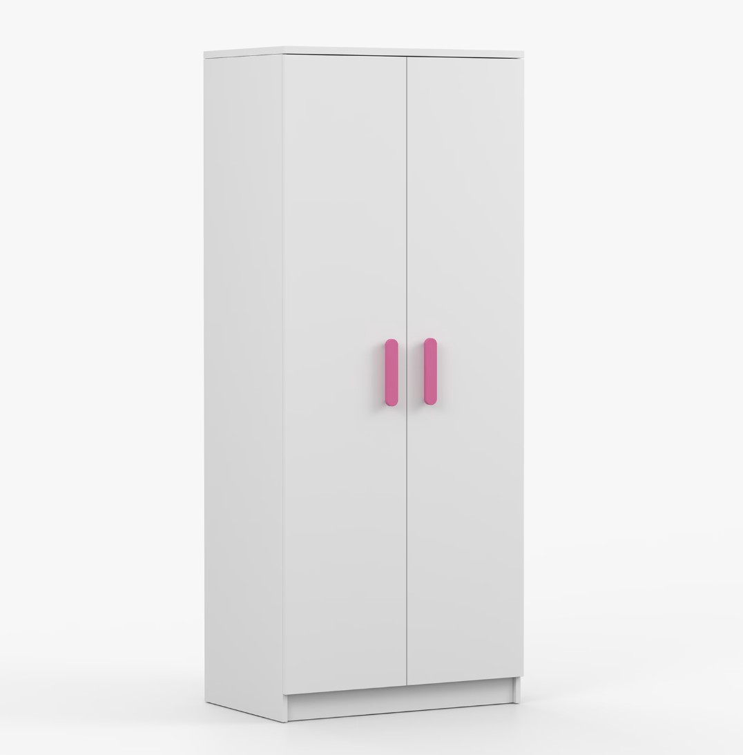 Dvoudveřová šatní skříň SCOUT s jednoduchým a moderním designem se hodí do každého typu domácnosti - ať už jde o dětský pokoj nebo studentův byt. Skříň je vyrobena z kvalitní laminované desky o tloušťce 16 mm s odolnými ABS hranami, které ji chrání před mechanickým poškozením. Šatní skříň poskytuje velký úložný prostor s dostatečným množstvím polic i místo na pověšení oblečení. Dveře jsou opatřené dřevěnými barevnými úchytkami a otevírají se tradičním způsobem.