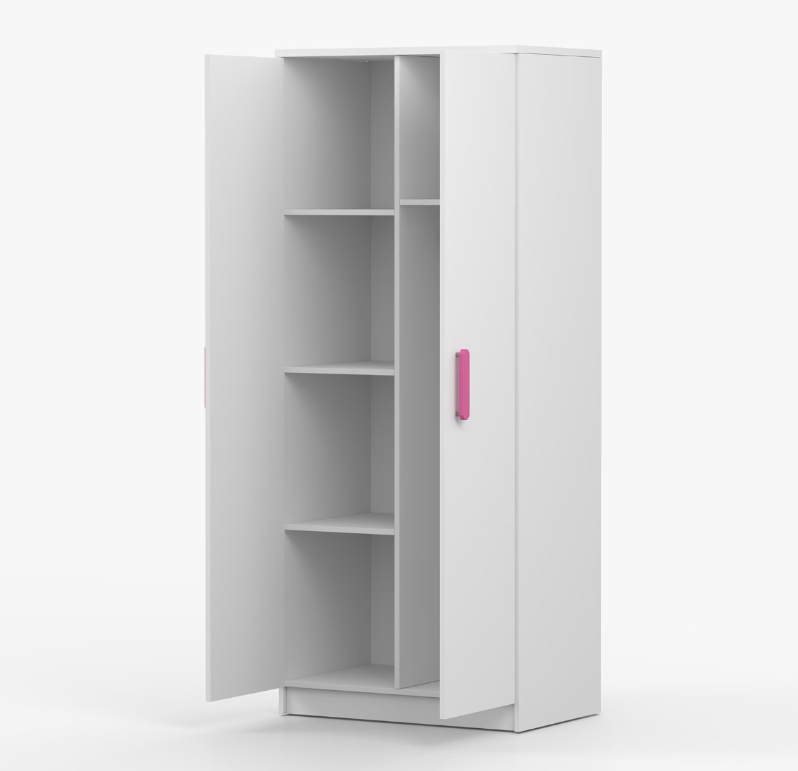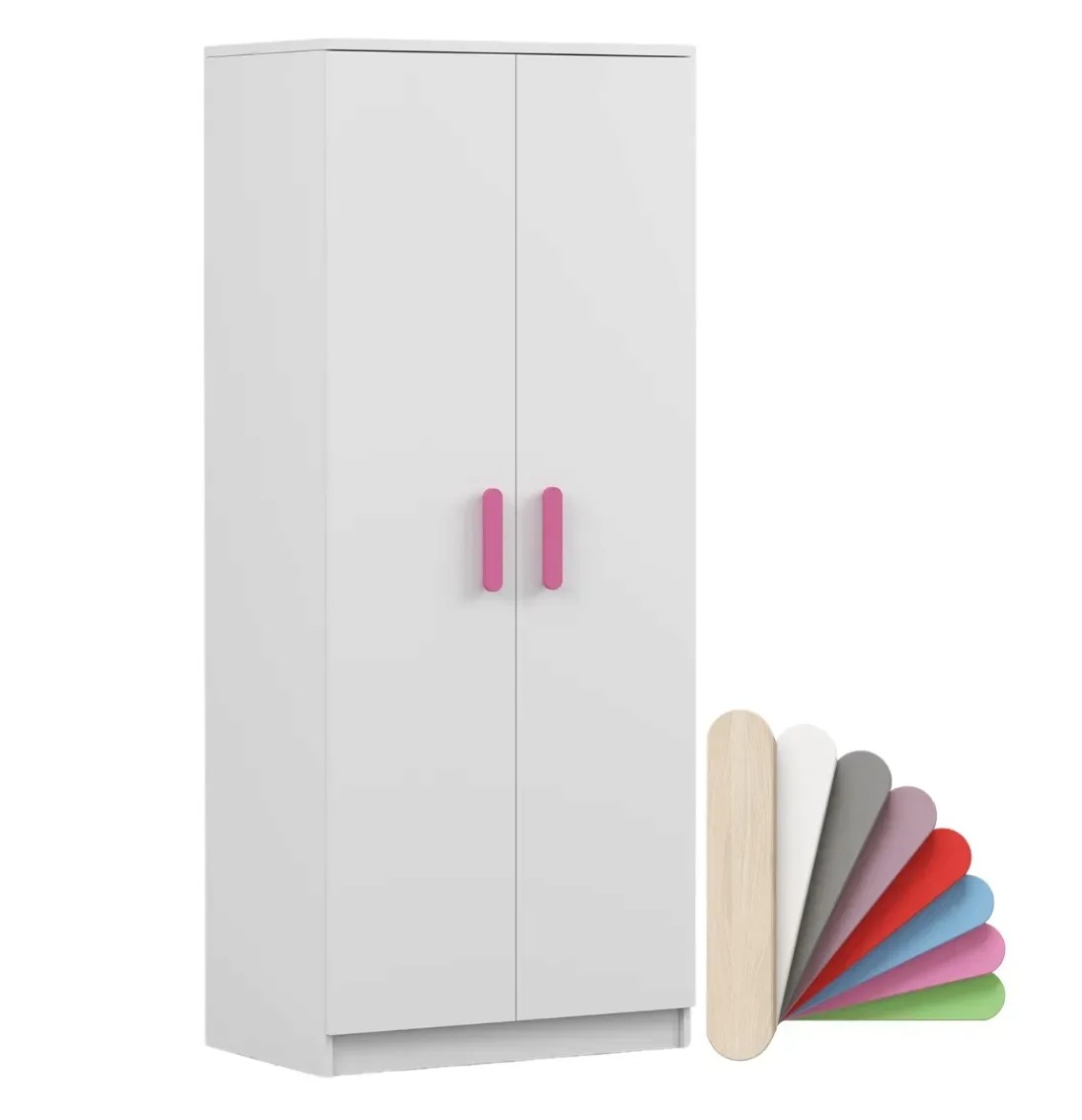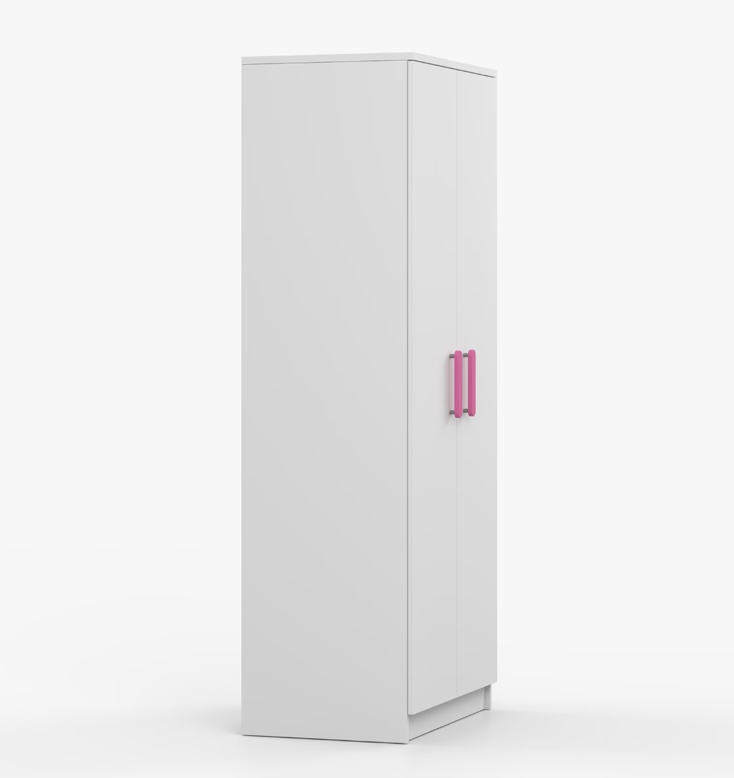 Dvoudveřová šatní skříň SCOUT s jednoduchým a moderním designem se hodí do každého typu domácnosti - ať už jde o dětský pokoj nebo studentův byt. Skříň je vyrobena z kvalitní laminované desky o tloušťce 16 mm s odolnými ABS hranami, které ji chrání před mechanickým poškozením. Šatní skříň poskytuje velký úložný prostor s dostatečným množstvím polic i místo na pověšení oblečení. Dveře jsou opatřené dřevěnými barevnými úchytkami a otevírají se tradičním způsobem.
