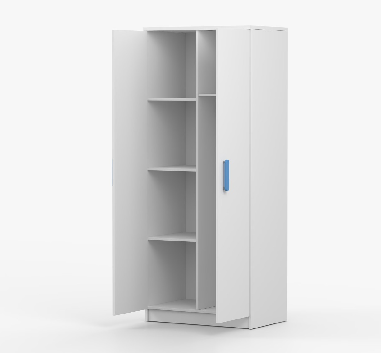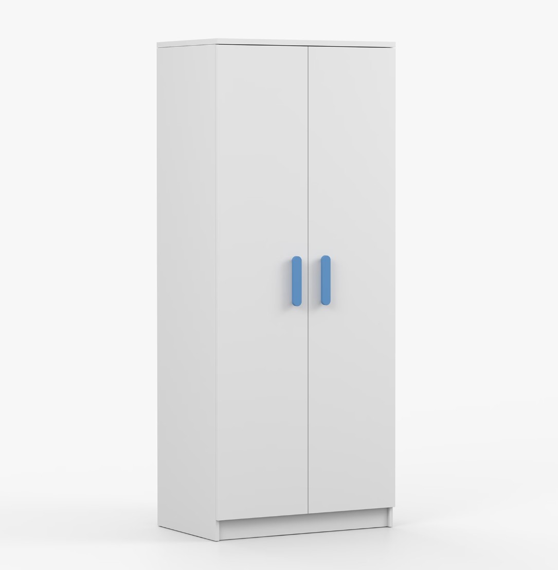 Dvoudveřová šatní skříň SCOUT s jednoduchým a moderním designem se hodí do každého typu domácnosti - ať už jde o dětský pokoj nebo studentův byt. Skříň je vyrobena z kvalitní laminované desky o tloušťce 16 mm s odolnými ABS hranami, které ji chrání před mechanickým poškozením. Šatní skříň poskytuje velký úložný prostor s dostatečným množstvím polic i místo na pověšení oblečení. Dveře jsou opatřené dřevěnými barevnými úchytkami a otevírají se tradičním způsobem.