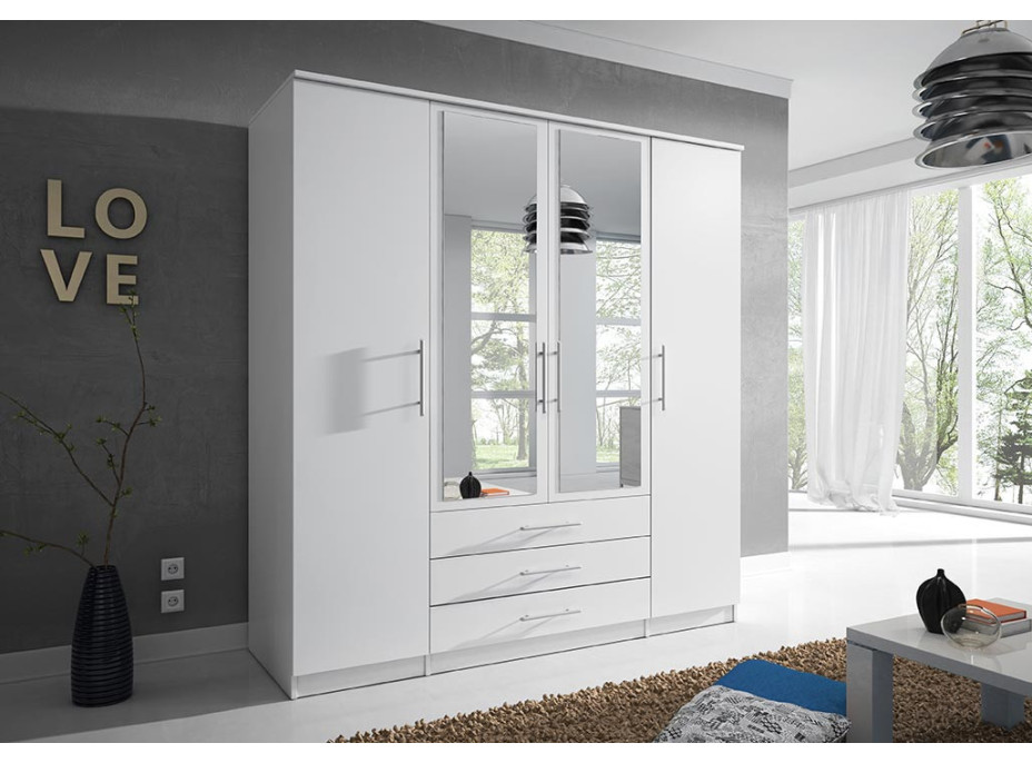 Šatní skříň SENECA 200 se vyznačuje moderním vzhledem, praktickým úložným prostorem a velkou kapacitou. Skříň má čtyři dveře a na přední straně dvě velká zrcadla, která opticky prosvětlí a zvětší místnost. Dveře se otevírají klasickým způsobem pomocí úchytek z PVC. Odkládací prostor je rozdělen na tři části - po vnějších stranách je prostor se šatními tyčemi pro zavěšení delších oděvů a v prostřední části jsou prostorné police se třemi zásuvkami. Skříň je vyrobena z vysoce kvalitní LTD desky o tloušťce 16 mm s odolnými ABS hranami.