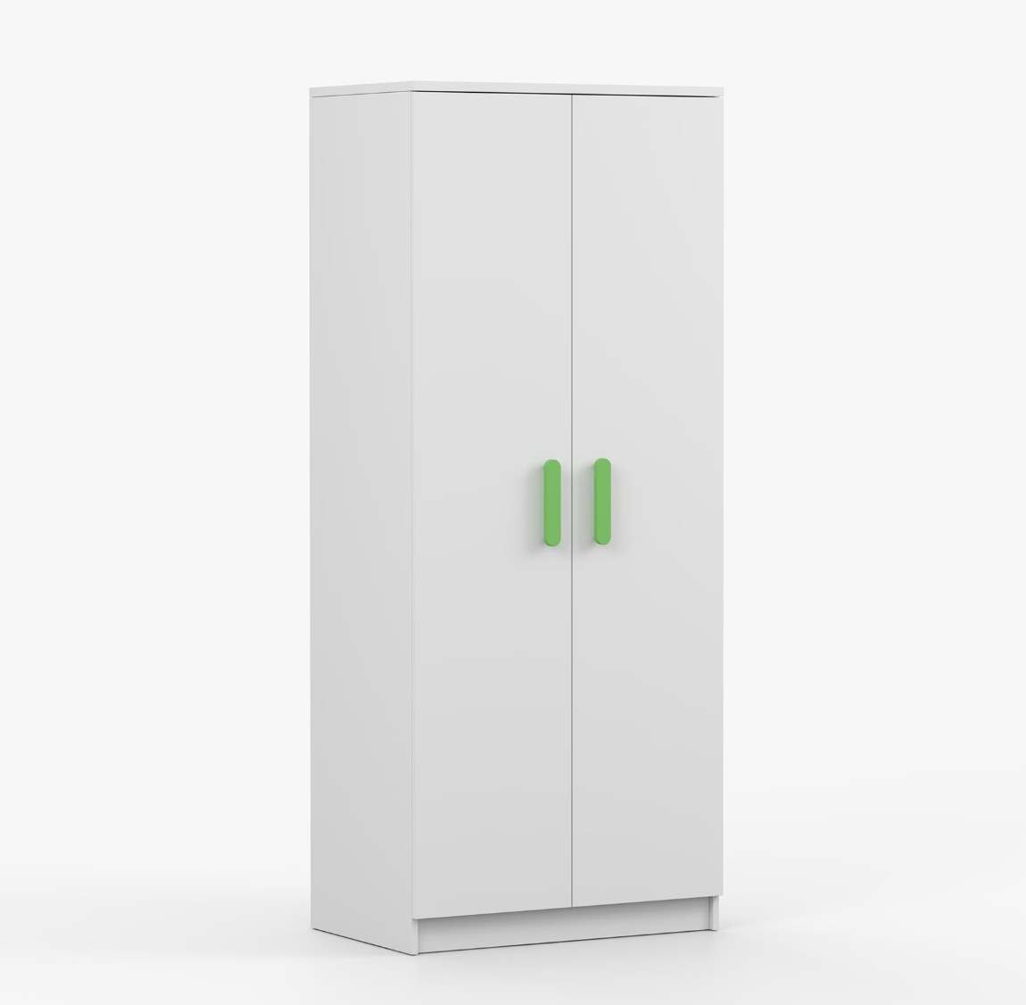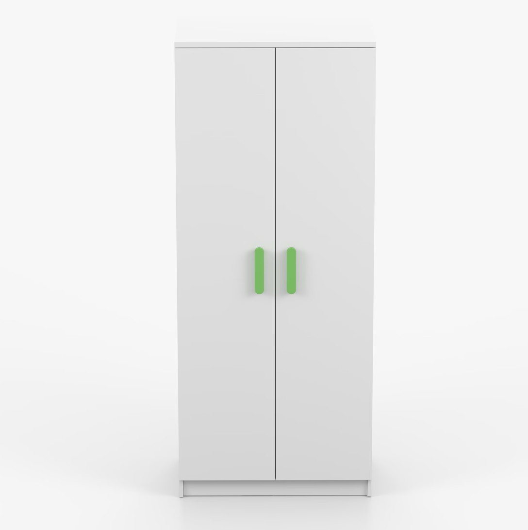 Dvoudveřová šatní skříň SMYK s jednoduchým a moderním designem se hodí do každého typu domácnosti - ať už jde o dětský pokoj nebo studentův byt. Skříň je vyrobena z kvalitní laminované desky o tloušťce 16 mm s odolnými ABS hranami, které ji chrání před mechanickým poškozením. Šatní skříň poskytuje velký úložný prostor s dostatečným množstvím polic i místo na pověšení oblečení. Dveře jsou opatřené dřevěnými barevnými úchytkami a otevírají se tradičním způsobem.
