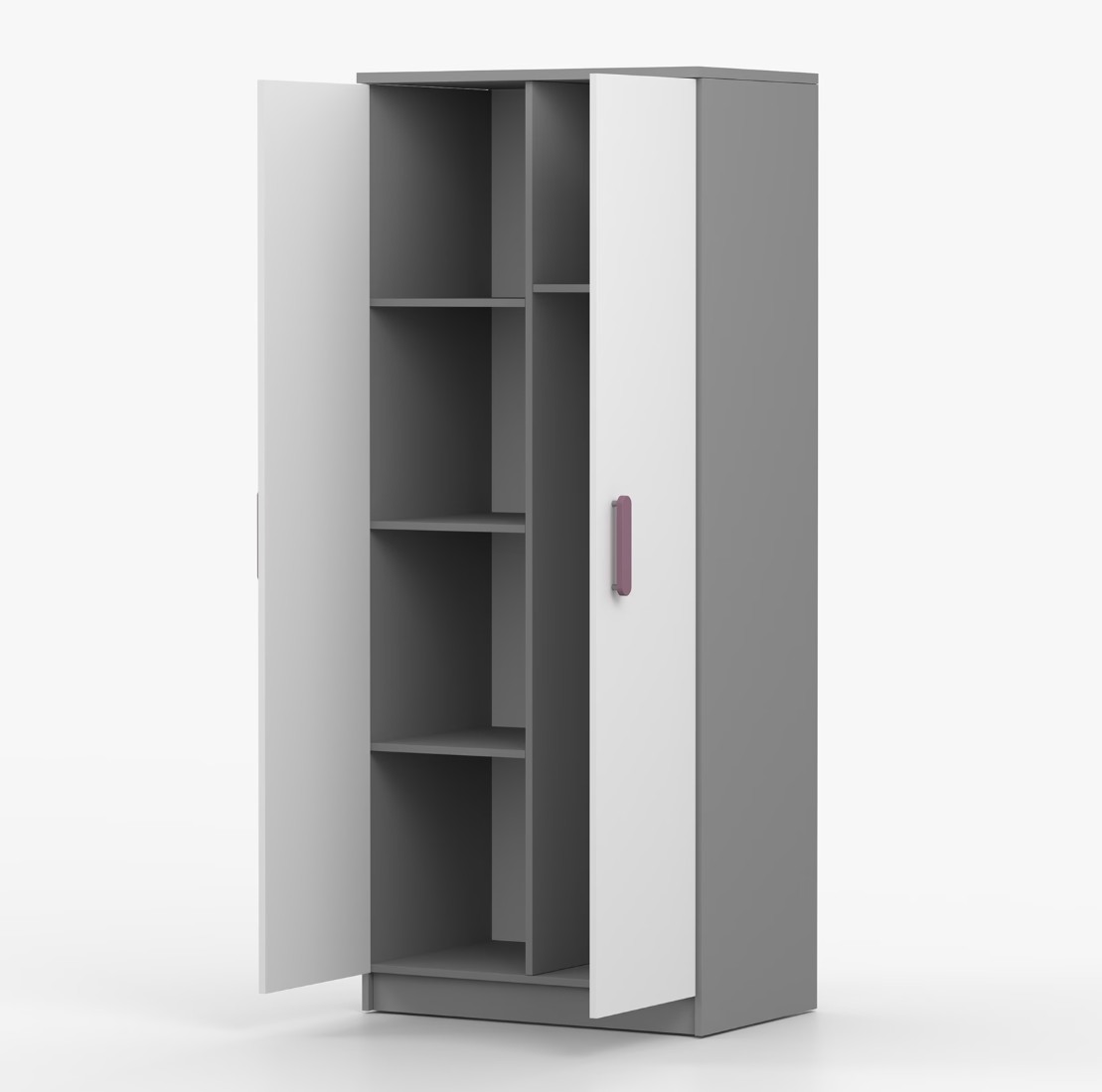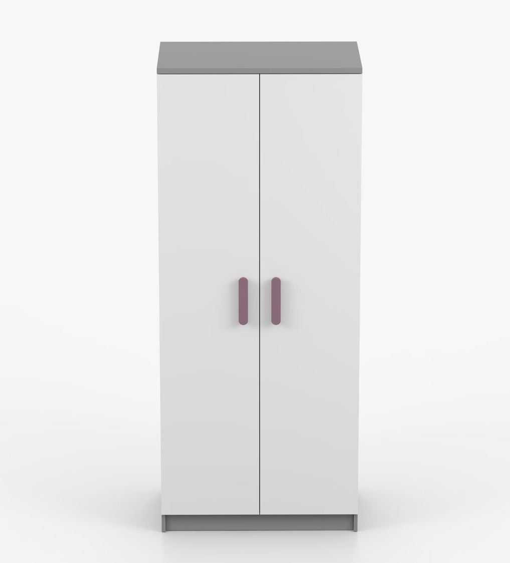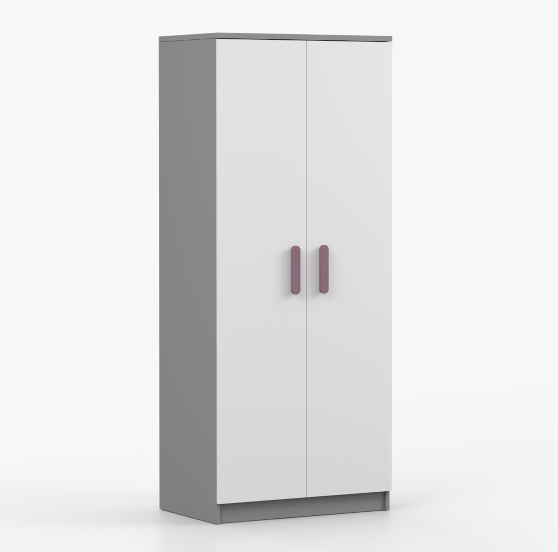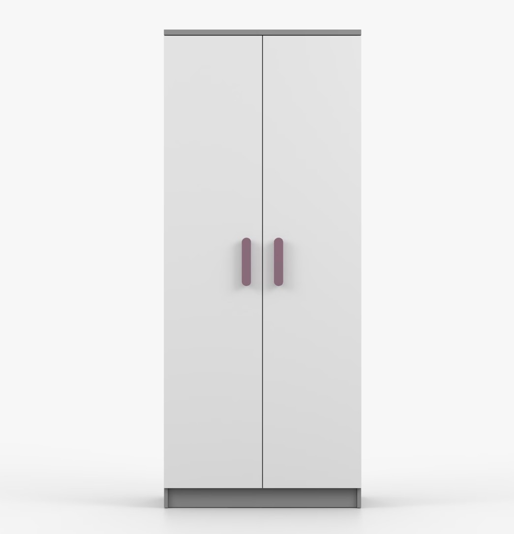 Dvoudveřová šatní skříň SMYK s jednoduchým a moderním designem se hodí do každého typu domácnosti - ať už jde o dětský pokoj nebo studentův byt. Skříň je vyrobena z kvalitní laminované desky o tloušťce 16 mm s odolnými ABS hranami, které ji chrání před mechanickým poškozením. Šatní skříň poskytuje velký úložný prostor s dostatečným množstvím polic i místo na pověšení oblečení. Dveře jsou opatřené dřevěnými barevnými úchytkami a otevírají se tradičním způsobem.