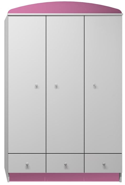 Tato šatní skříň je ve skutečnosti all-in-one. Naleznete v ní veškeré úložné prostory. Hned ve spodní části skříně naleznete tři šuplíky. Vrchní část skříně je rozdělena do dvou částí. V pravé samostatné části je pět polic. V levé části je nahoře dlouhá police a ve zbytku veliký prostor se šatní tyčí.