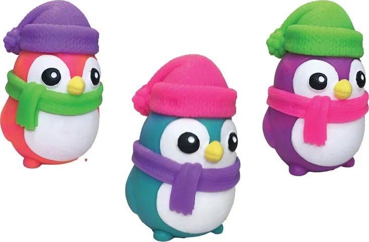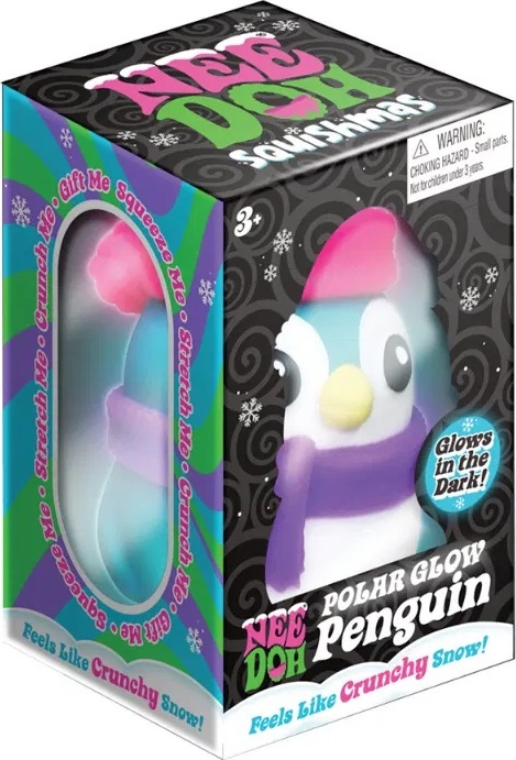 Zmáčkni, zakřupej, rozzař! Veselý tučňák ukrývá fantastickou „ledovou“ výplň, která křupe jako skutečný sníh, a navíc září ve tmě. Vytvoří tak zimní pohádkovou atmosféru doma i na cestách. Je bezpečný, zdravotně nezávadný, naplněný pružnou, těstu podobnou hmotou, která se vždy vrátí do původního tvaru. Je to ideální vánoční dárek, který je skvělý pro smyslové hraní a nabízí způsob, jak pomoci dětem uvolnit se po nabitém dni. Snadno se chytá, mačká a hněte. Účinně napomáhá ke snižování stresu a úzkostí a k lepší koncentraci a produktivitě dětí. Tím, že zapojí smysly a zaneprázdní ruce, uklidní se a lépe se soustředí na daný úkol. Perfektní dárek pro jakoukoliv příležitost. Vnější materiál produktů NeeDoh je termoplastická guma, vnitřní náplň je polyvinylalkohol (PVA), oba materiály jsou netoxické. PVA se používá také jako potah ve farmaceutických přípravcích a doplňcích stravy.