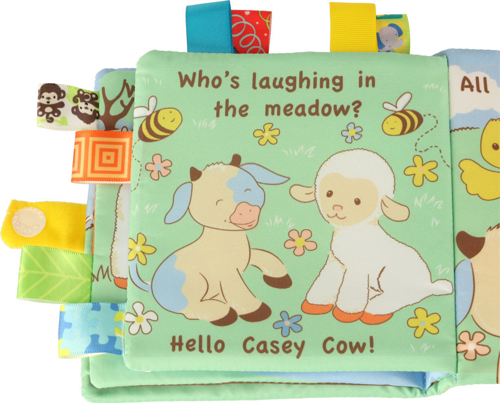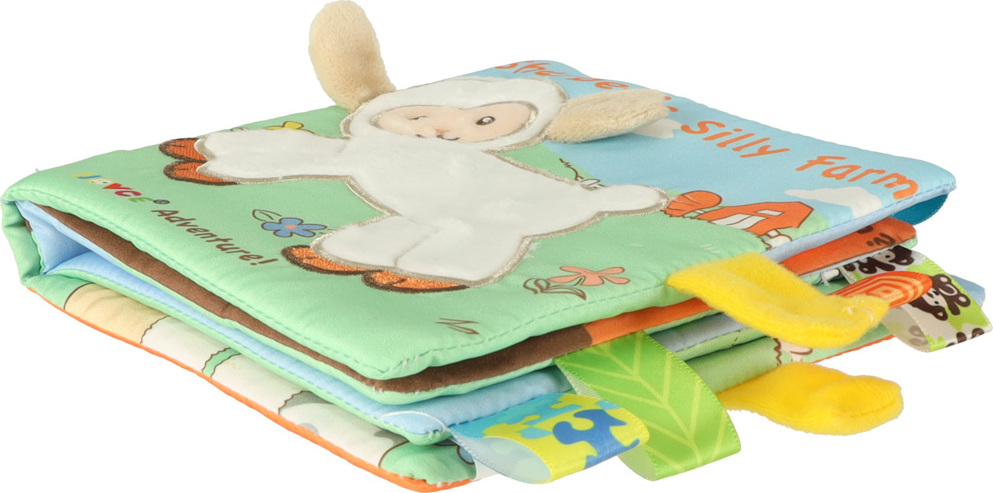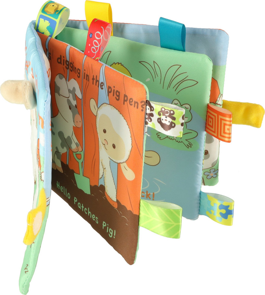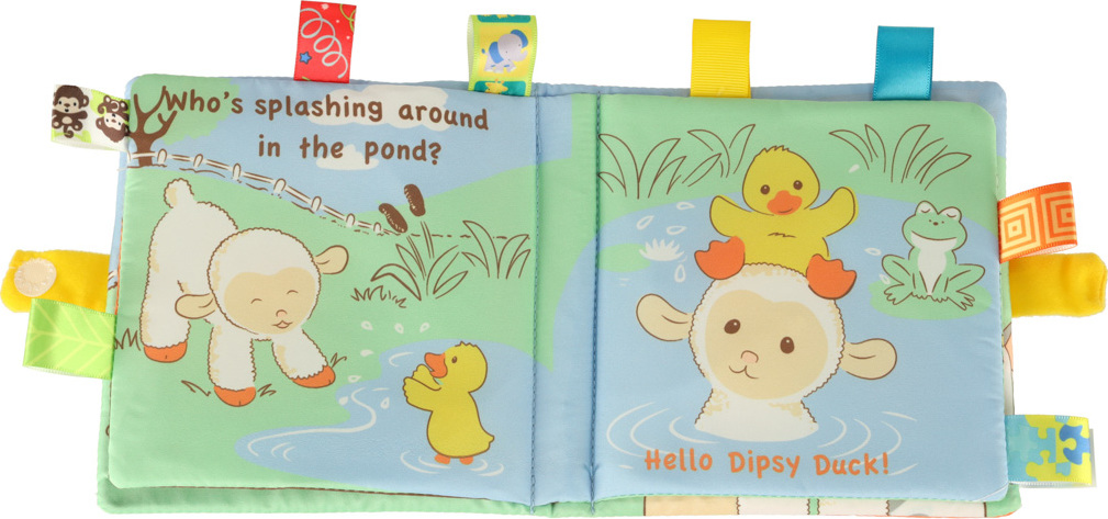 Kniha vypráví krátký příběh v angličtině a podporuje osvojování jazyka od útlého věku. Knihu lze prát v pračce, takže se snadno udržuje v čistotě. Tato hračka rozvíjí senzorické dovednosti a stimuluje fantazii.