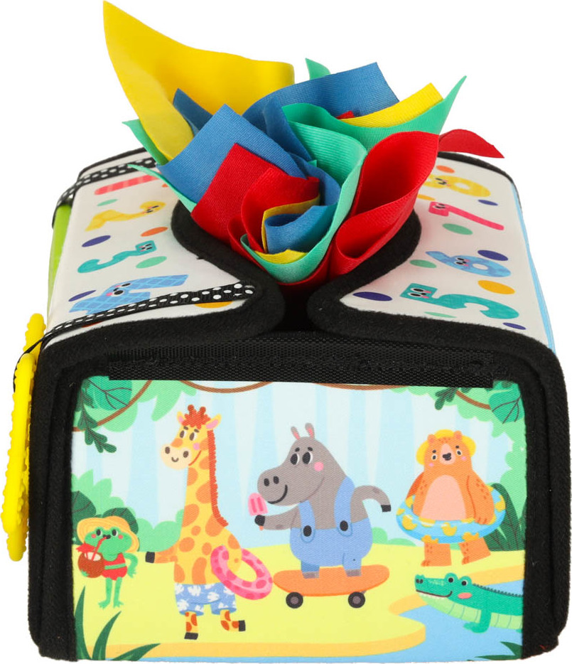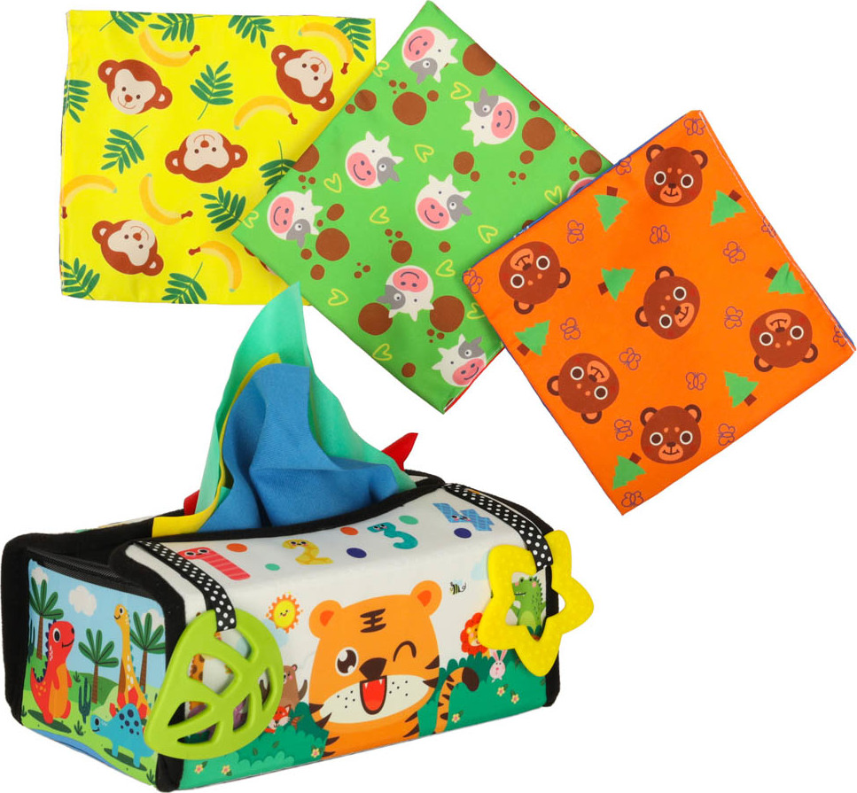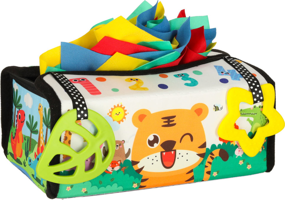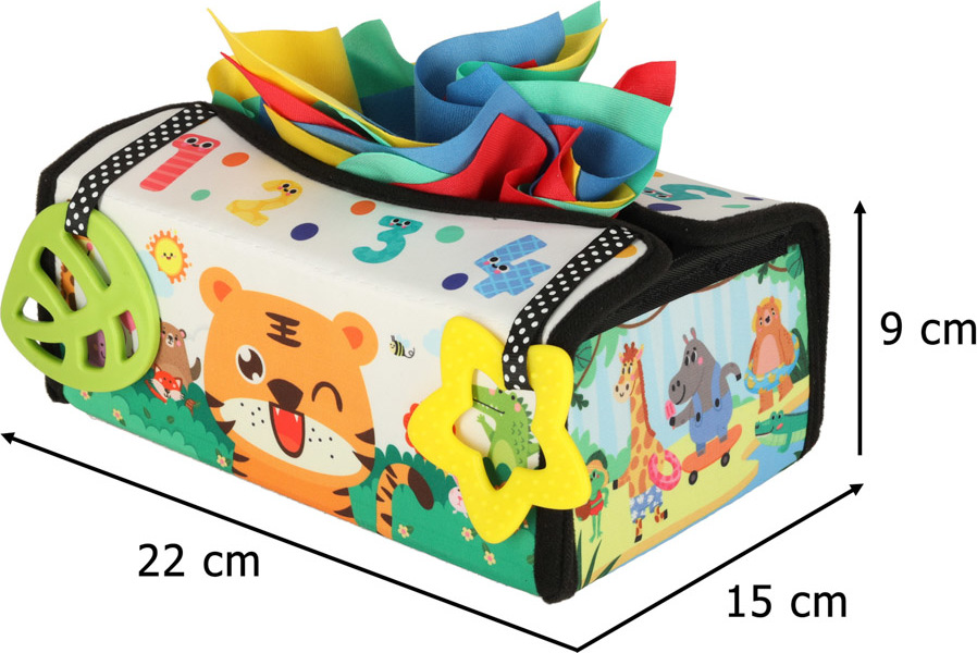 Zábavné vytahování a vkládání ubrousků do krabičky pomáhá rozvíjet manuální dovednosti a jemnou motoriku. Dítě si procvičuje přesné pohyby rukou a zároveň si užívá poznávání barev a textur.