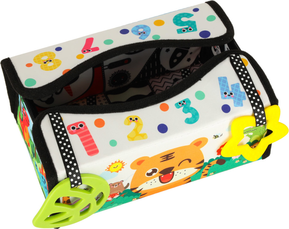 - Barevná krabička s motivem zvířátek - přitahuje oči batolat a vybízí je ke hře