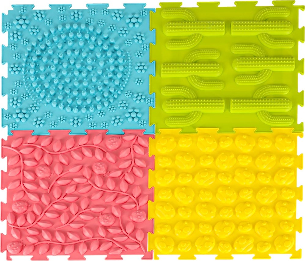 Senzorické puzzle se skládají z 8 dílků se 6 různými texturami. Díly jsou flexibilní a snadno se do sebe zasouvají, takže jejich pouhé uspořádání na povrchu je skvělým zážitkem. Výhody senzorické podložky lze objevit během vzdělávacích aktivit v předškolních zařízeních, školách nebo mimoškolních klubech – je určena pro děti od 2 let. Ocení ji i rodiče, kteří mohou snadno využít jejích prospěšných vlastností. Chůze po výstupcích přinese úlevu unaveným a oteklým nohám. Puzzle lze umístit na jakýkoli rovný povrch – v závislosti na vašich potřebách se mohou stát centrem dětské hry nebo příjemným koutkem pro relaxaci a klid.