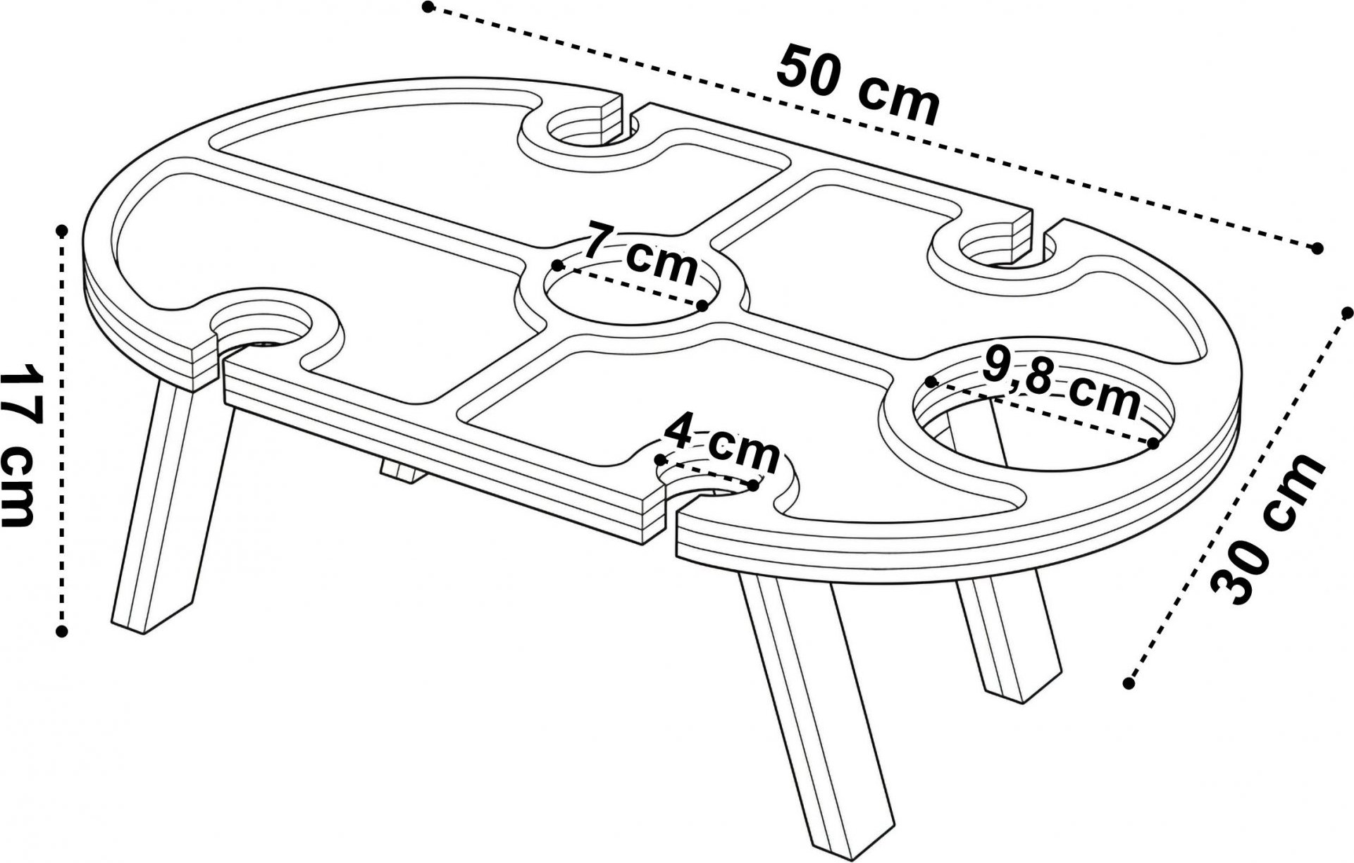 - výška s rozloženými nohami: 17 cm