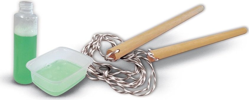 Nafukování bublin už není stejné, jako dřív. Díky šikovnému nástroji a super silnému mýdlovému koncentrátu si můžete vytvořit megabubliny! Jak velkou zvládnete? Držte pruty u sebe a ponořte lanko do mýdlového koncentrátu. Vytáhněte a opatrně pruty dejte od sebe. Nyní se Vám vytvořila bublina. Pomalu začněte couvat a sledujte jak se bublina neustále zvětšuje. Až už bude dost veliká, opět dejte pruty k sobě. Megabublina se začne vznášet. Sledujte, jak daleko doletí! Sada obsahuje: Nástroje na výrobu megabublin, mýdlový koncentrát s víčkem (200ml) a plastovou nádobu. Vhodné pro děti od 5 let.Vlastnosti