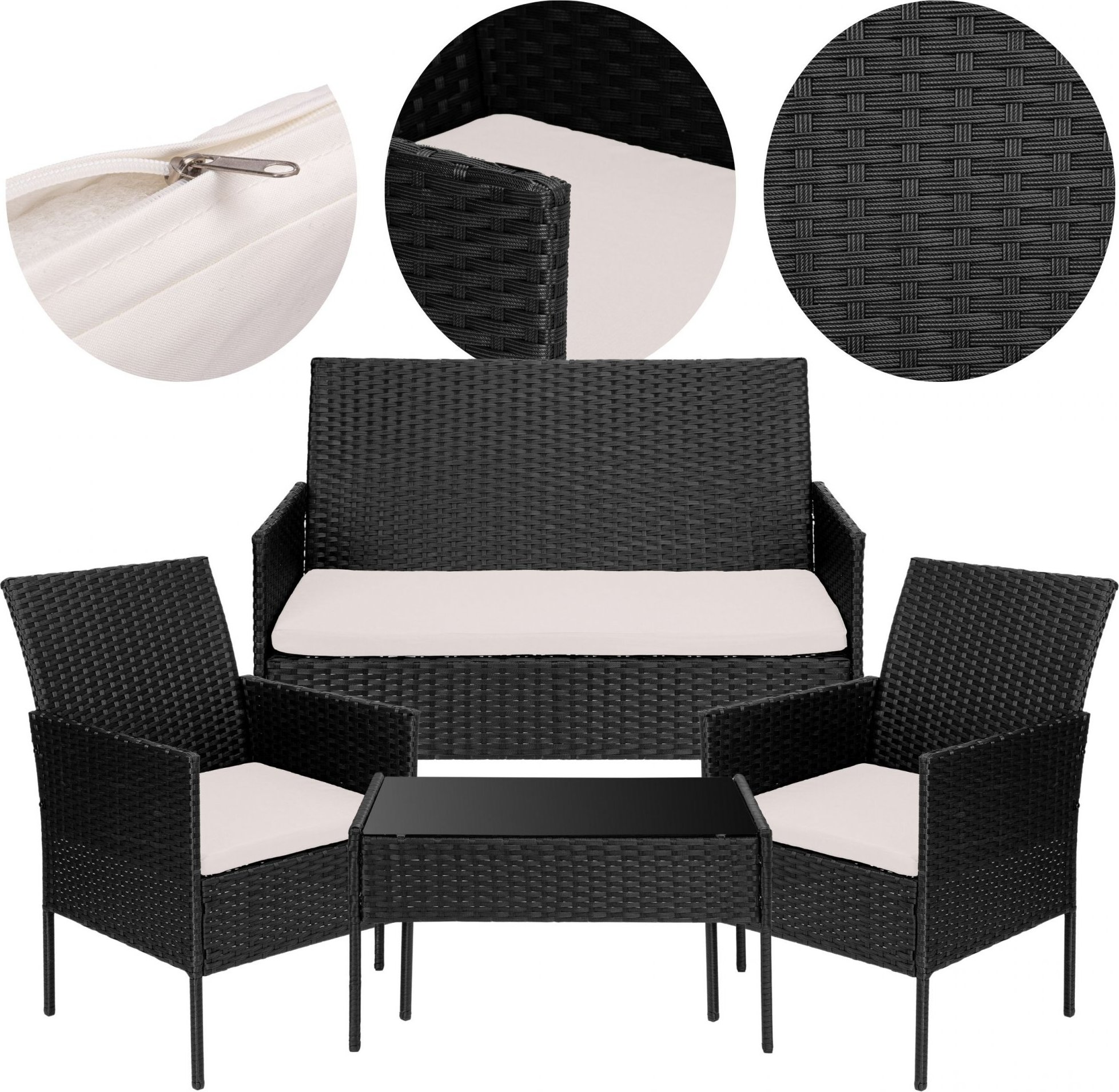 Sestava zahradního ratanového nábytku MAGNOLIA - černá/béžová