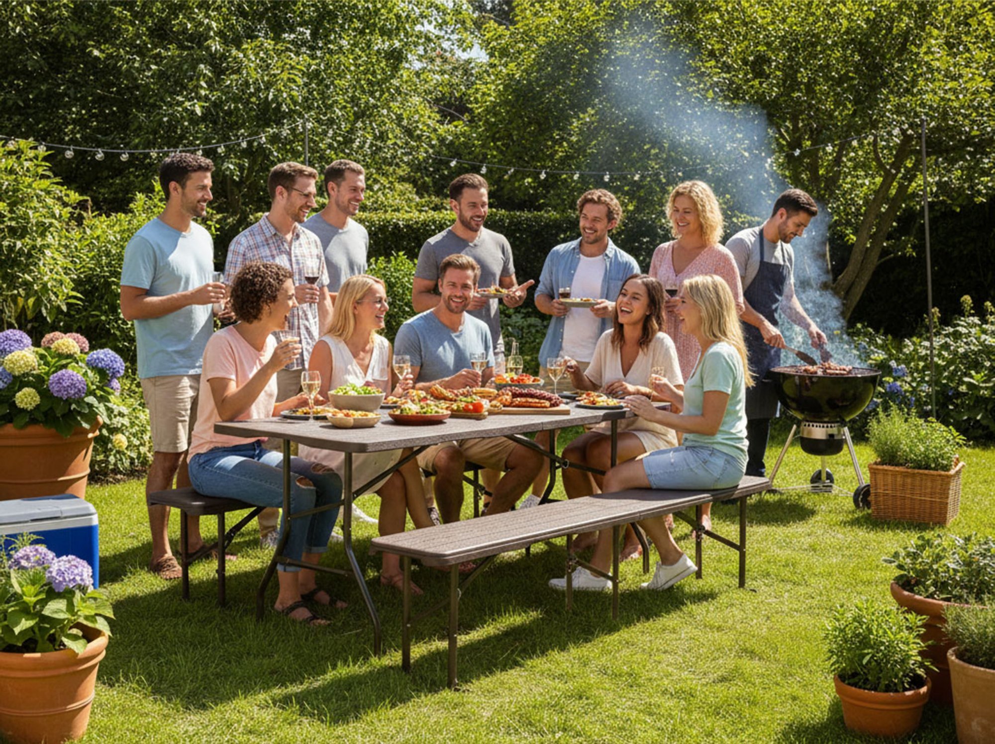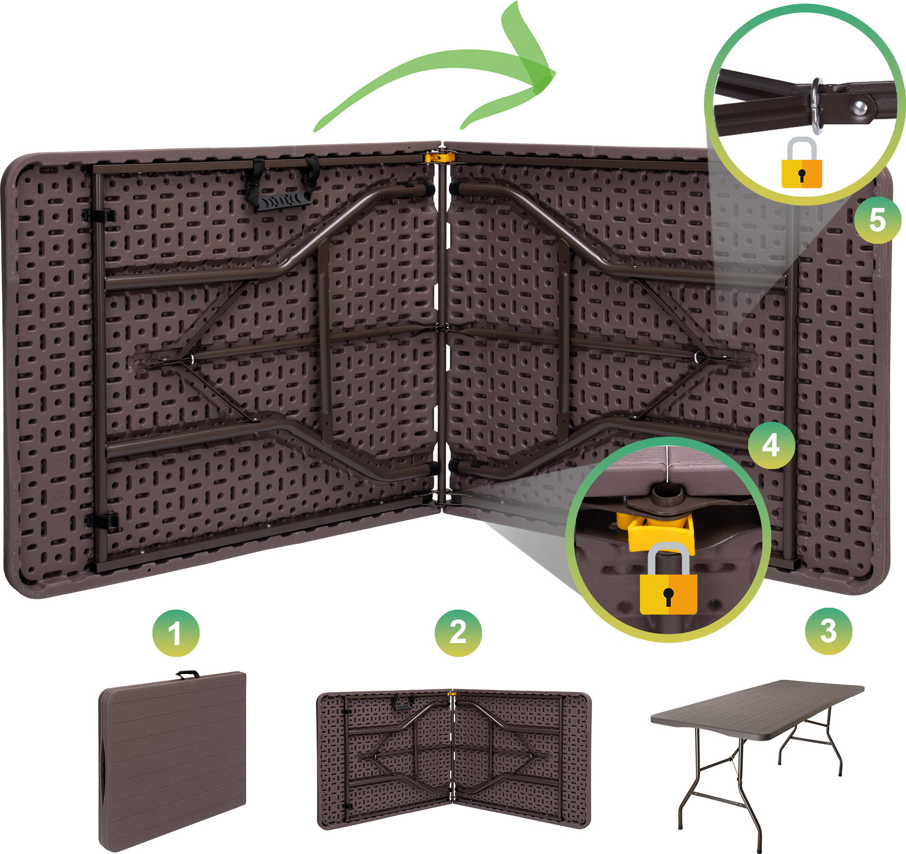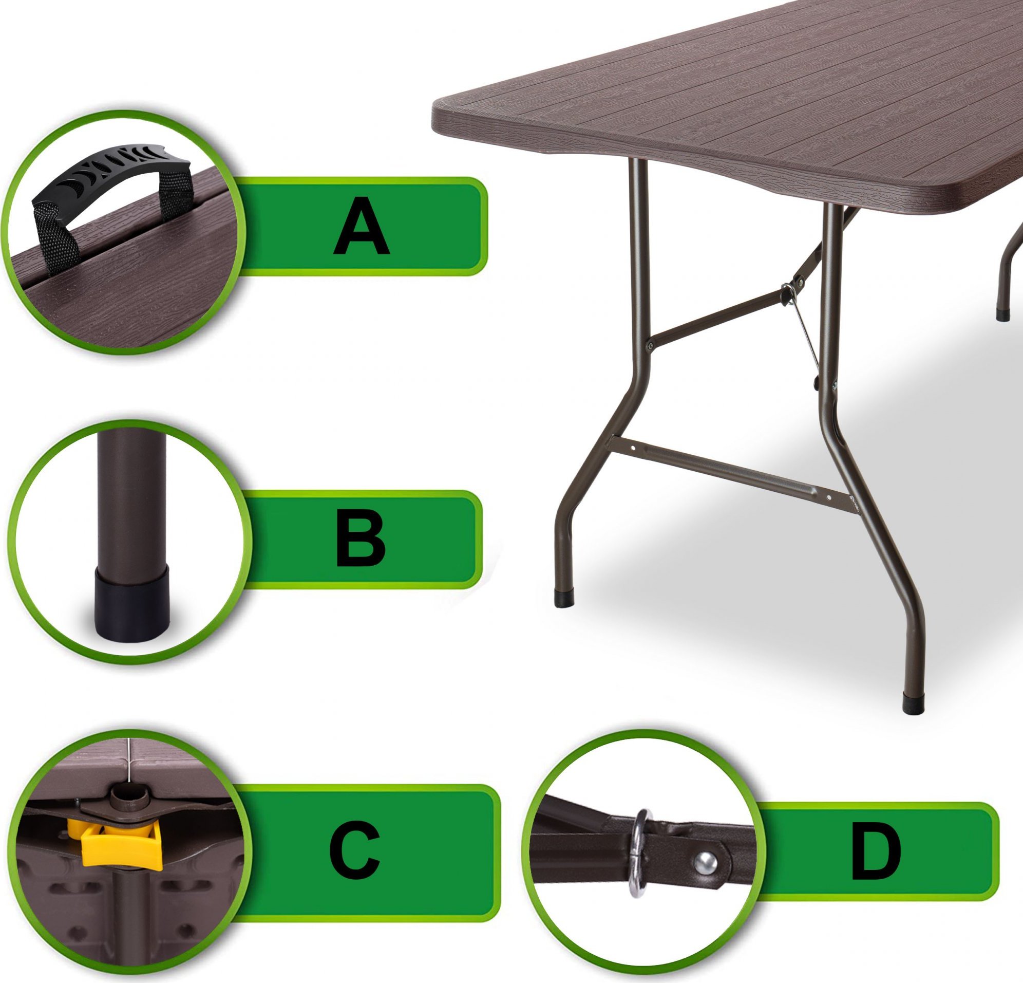 Praktická cateringová sada Woodland, která obsahuje stůl a dvě lavice, je vynikající volbou pro ty, kteří si cení pohodlí, praktičnosti a odolnosti. Její lehká a skládací konstrukce usnadňuje přepravu a skladování, zatímco robustní konstrukce z oceli a HDPE zajišťuje odolnost vůči povětrnostním vlivům. Je ideální jak pro venkovní akce, tak pro rodinná setkání a zaručuje stabilitu a bezpečnost používání bez ohledu na místo.