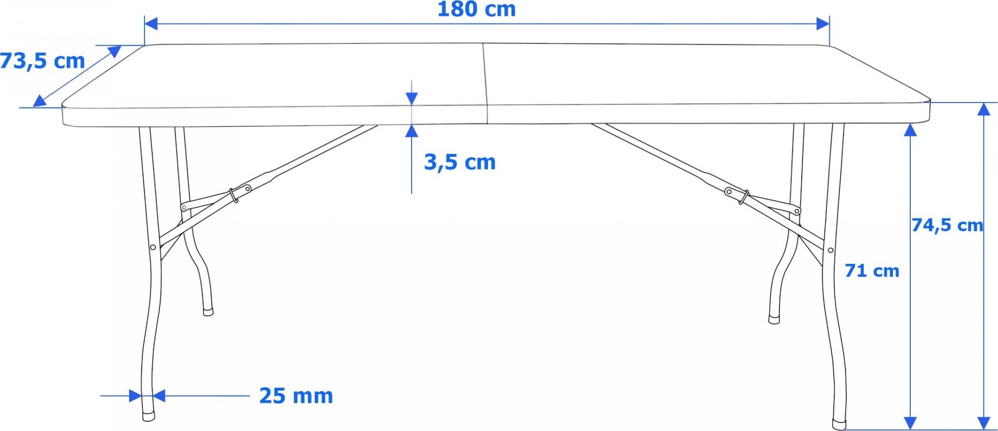 - Rozměry složeného stolu (pouzdro): 73,5 cm x 91 cm x 7,5 cm
