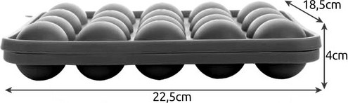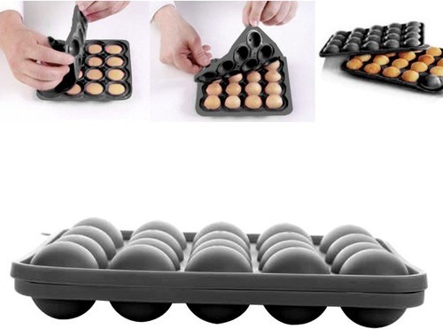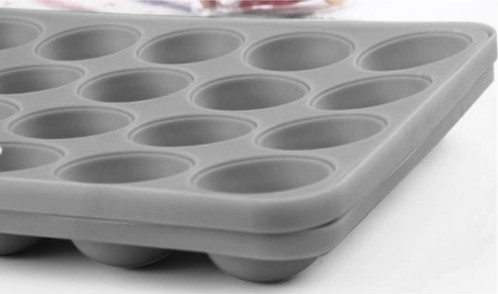 Forma je vybavena 20 otvory ve tvaru kuliček, kde je možné umístit i špejle. Forma je vyrobena z kvalitního, tepelně odolného, silikonového materiálu, který nejen zkracuje čas pečení, ale také zaručí snadné plnění i vyndání.