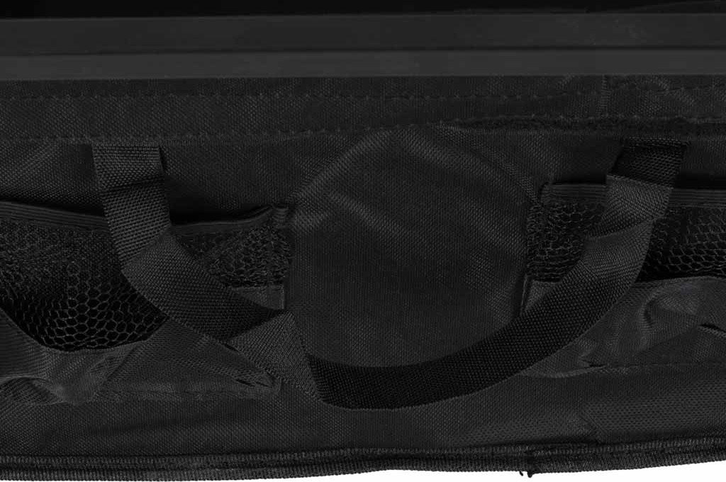 - Rychlá montáž a demontáž - není potřeba žádné nářadí. Odnímatelná taška na suchý zip s rukojeťmi na obou stranách, snadné přenášení volných předmětů.