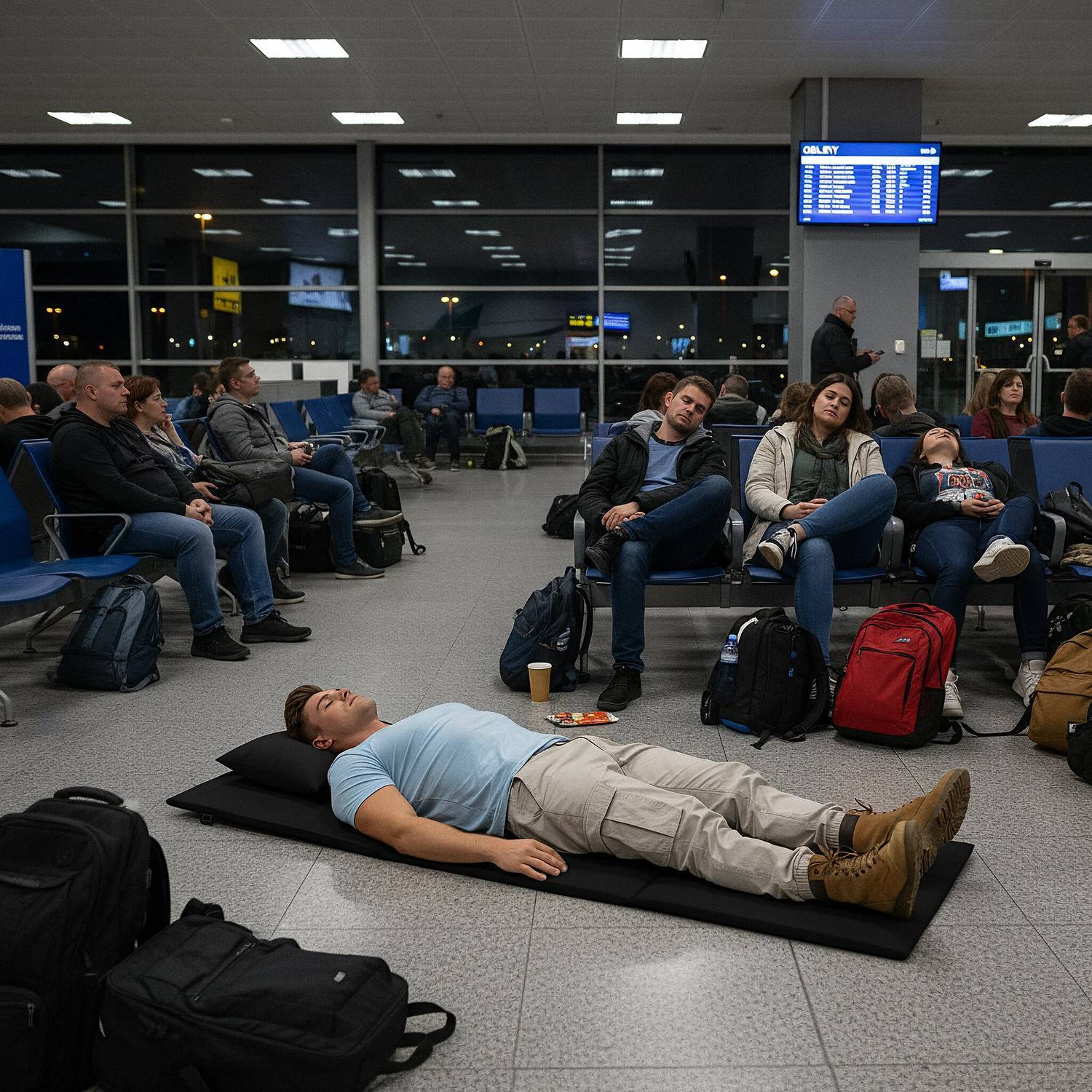 Skládací podložka SURVIVAL s polštářem - 180x50 cm - černá