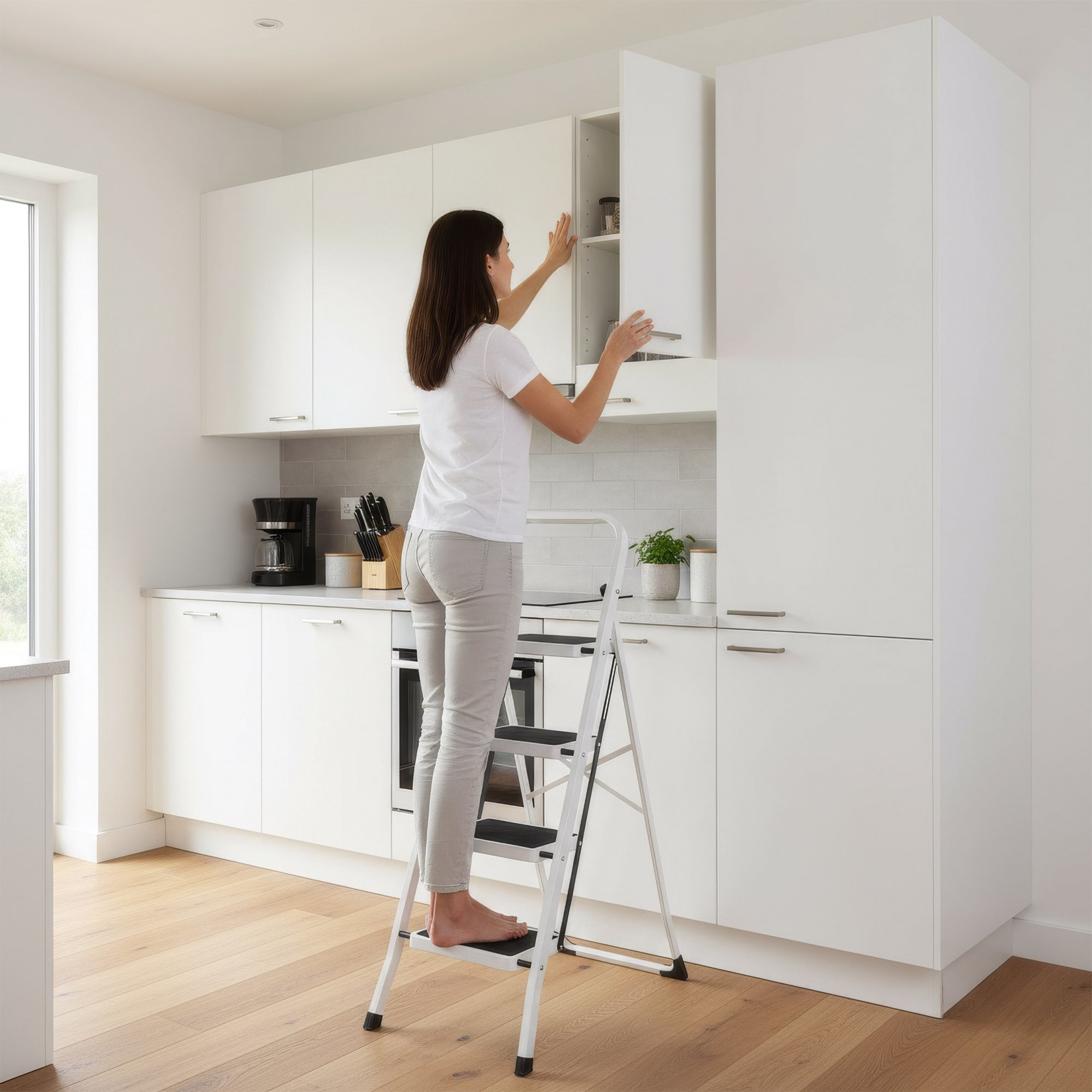 Čtyřstupňový žebřík Stige je funkční pomůckou pro každodenní domácí práce, když potřebujete stabilní plošinu bez nutnosti velkého a nepraktického žebříku. Usnadňuje přístup k vyšším policím, skříňkám a oknům, čímž šetří čas a energii. Jeho pevná konstrukce, protiskluzové schůdky a kompaktní design zajišťují pohodlí a bezpečnost a po dokončení lze žebřík snadno složit a uskladnit i v těch nejužších prostorách.