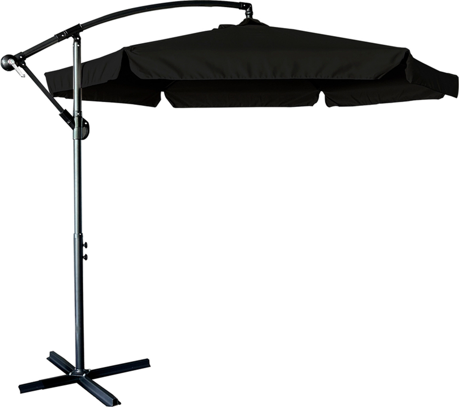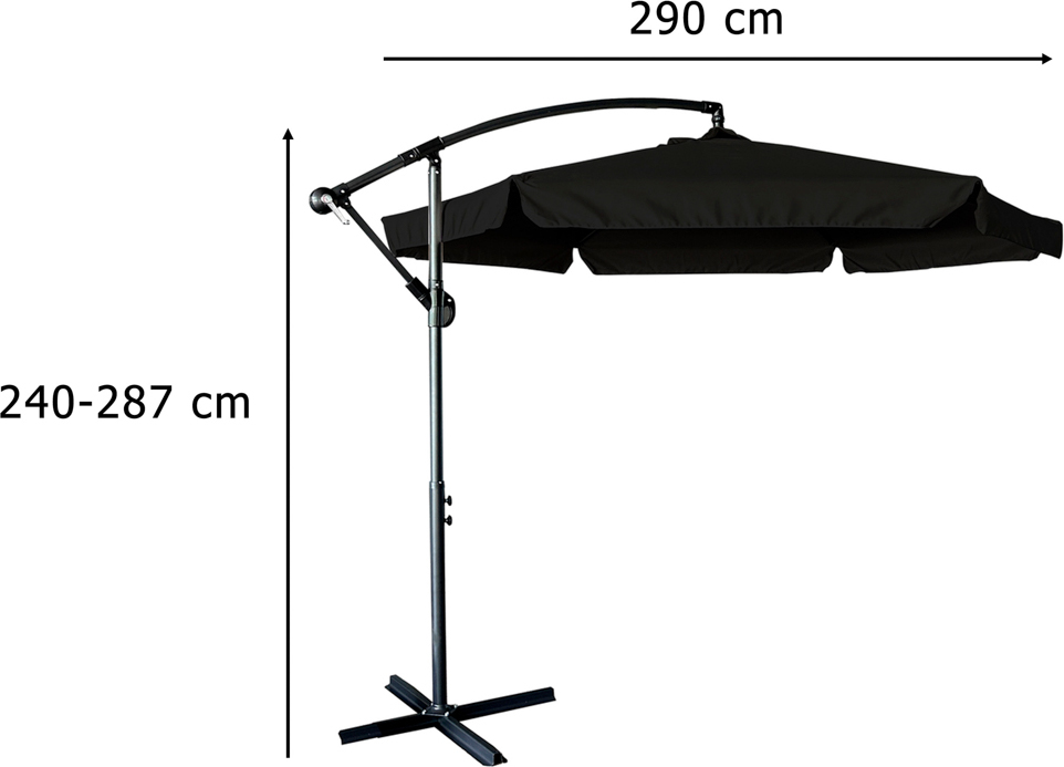 Skládací zahradní slunečník LUARO s prodlužovacím ramenem - 290 cm - černý