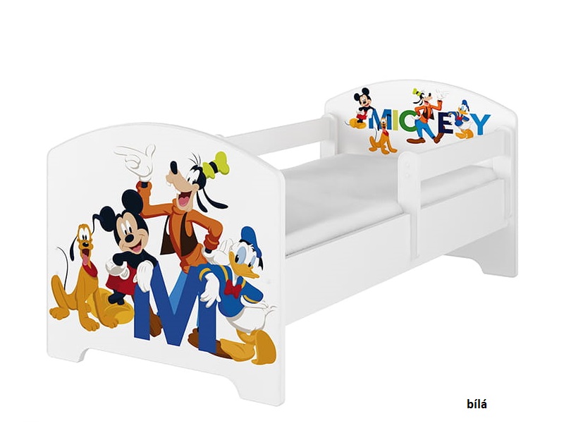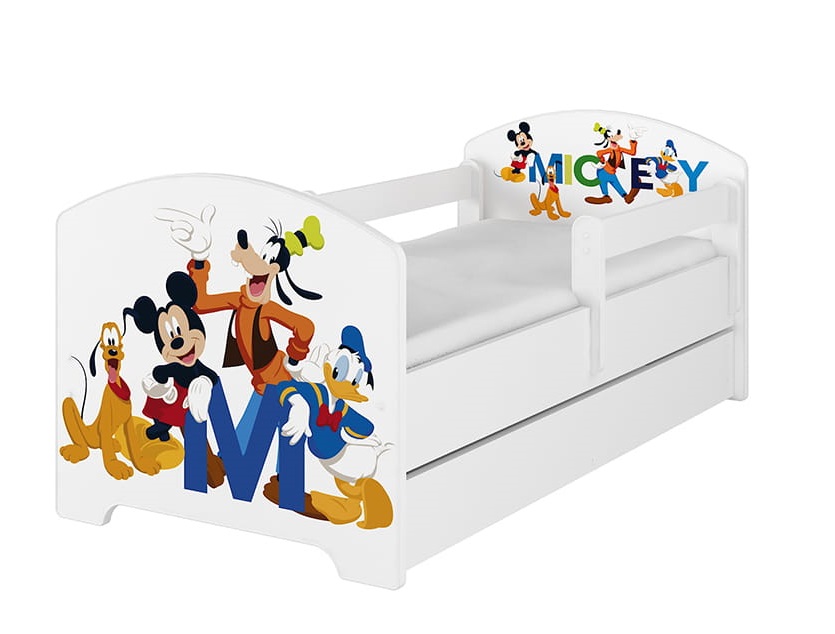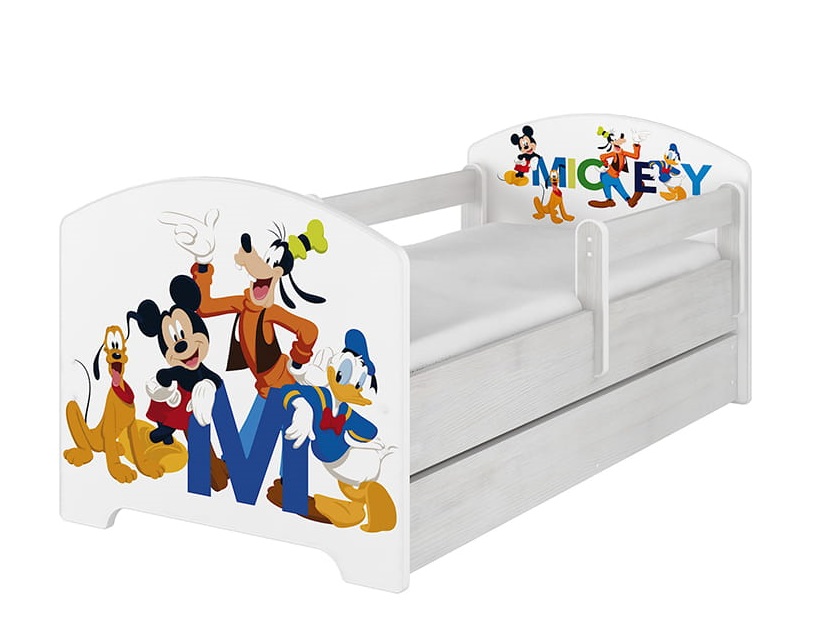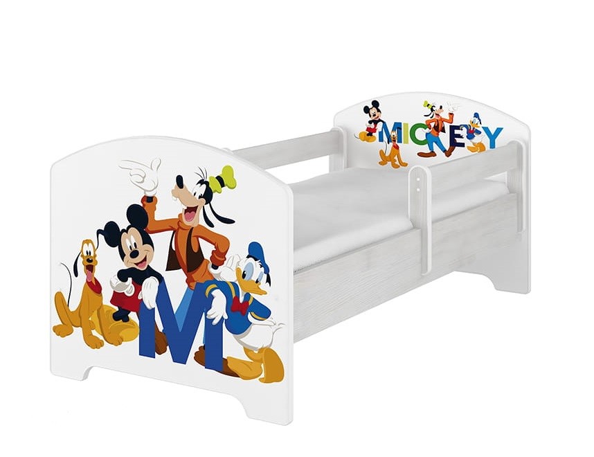 SKLADEM: Dětská postel Disney bez šuplíku - MICKEY FRIENDS 140x70 cm - norská borovice + matrace + 1 dlouhá a 1 krátká bariéra