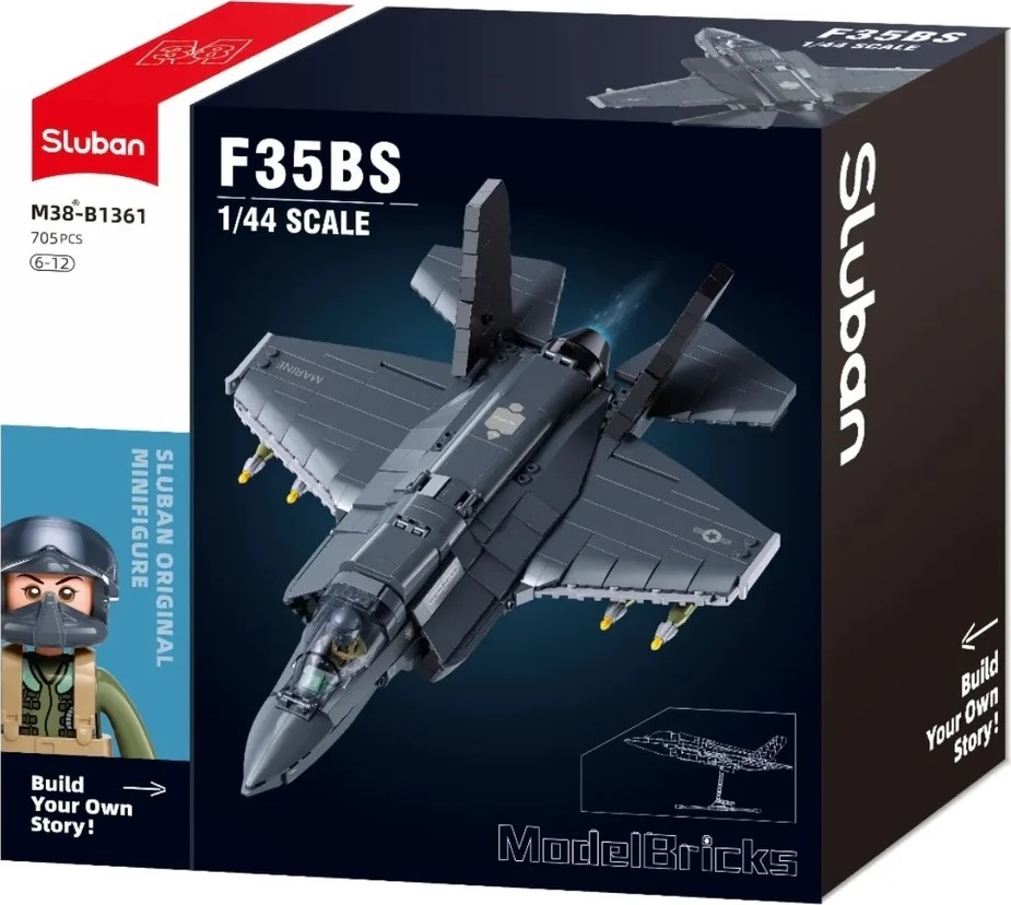 Stavebnice Sluban Model Bricks F35BS představuje detailní model moderního víceúčelového bojového letounu páté generace F-35B Lightning II, který je známý svými schopnostmi krátkého vzletu a přistání na letadlových lodích. Tento model v měřítku 1 : 44 je sestaven z 705 kvalitních plastových dílků vyrobených z pevného a odolného ABS plastu, díky kterému je konstrukce stabilní a odolná. Model věrně kopíruje skutečný tvar letounu, včetně detailního trupu, křídel a průhledného kokpitu s prostorem pro pilota. Pohyblivé části, jako jsou křídla, výškovky a podvozek, umožňují nastavit model do letové i přistávací pozice, což zvyšuje jeho realistický vzhled a hrací hodnotu. Navíc je vybaven závěsníky pro podvěšenou výzbroj, která simuluje rakety a bomby. Součástí balení je také sestavitelný stojan pro atraktivní vystavení modelu. K sadě patří originální minifigurka pilota Sluban v letecké výstroji, která doplňuje celkový dojem a rozšiřuje možnosti hry či sběratelské prezentace. Tato sada je doporučená pro děti ve věku 6 až 12 let, ale díky své detailnosti a kvalitě zpracování potěší i starší stavitele. Sluban je možno kombinovat s podobnými stavebnicemi mnoha dalších významných výrobců, včetně LEGO®. Podporuje rozvoj jemné motoriky, trpělivosti a prostorové představivosti. Řada Sluban Model Bricks se zaměřuje na realistické modely vojenské a civilní techniky, které osloví jak mladé stavitele, tak nadšence modelářství a sběratele. Sluban je možno kombinovat s podobnými stavebnicemi mnoha dalších významných výrobců, včetně LEGO®.