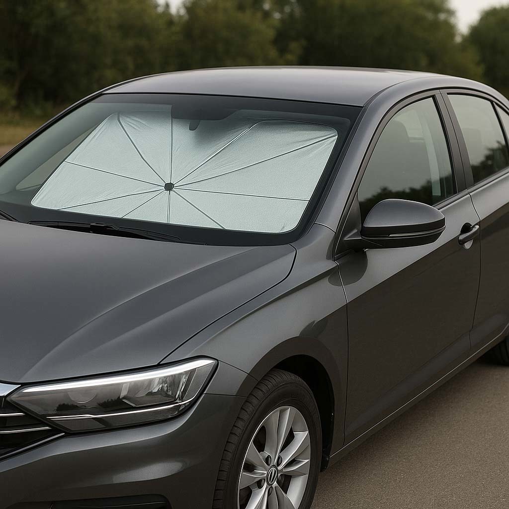 Jeho výjimečně jednoduchý a snadno použitelný design okamžitě ochrání váš vůz před přehřátím. Jednoduše rozložte clonu do auta jako deštník a umístěte ji dovnitř vozu tak, aby přilnula k čelnímu sklu. Speciální reflexní vrstva chrání interiér. Sluneční světlo nedopadá na černé součásti interiéru, takže je udržuje v chladu a příjemném teple.