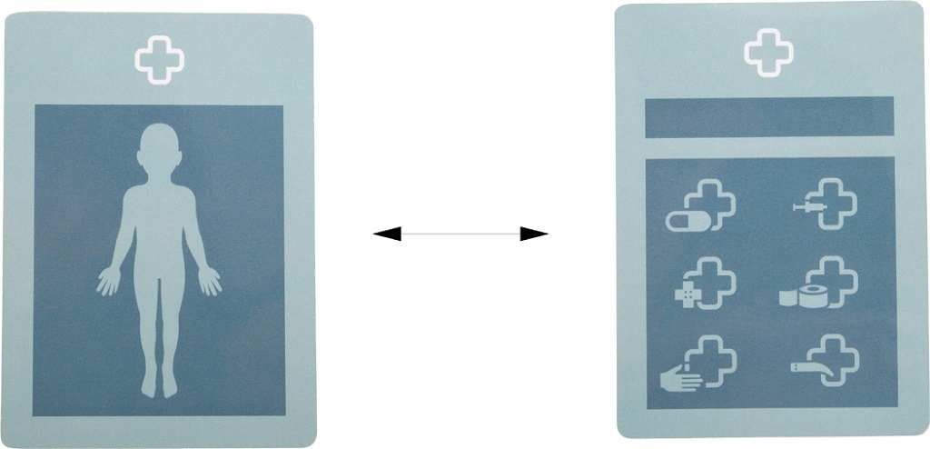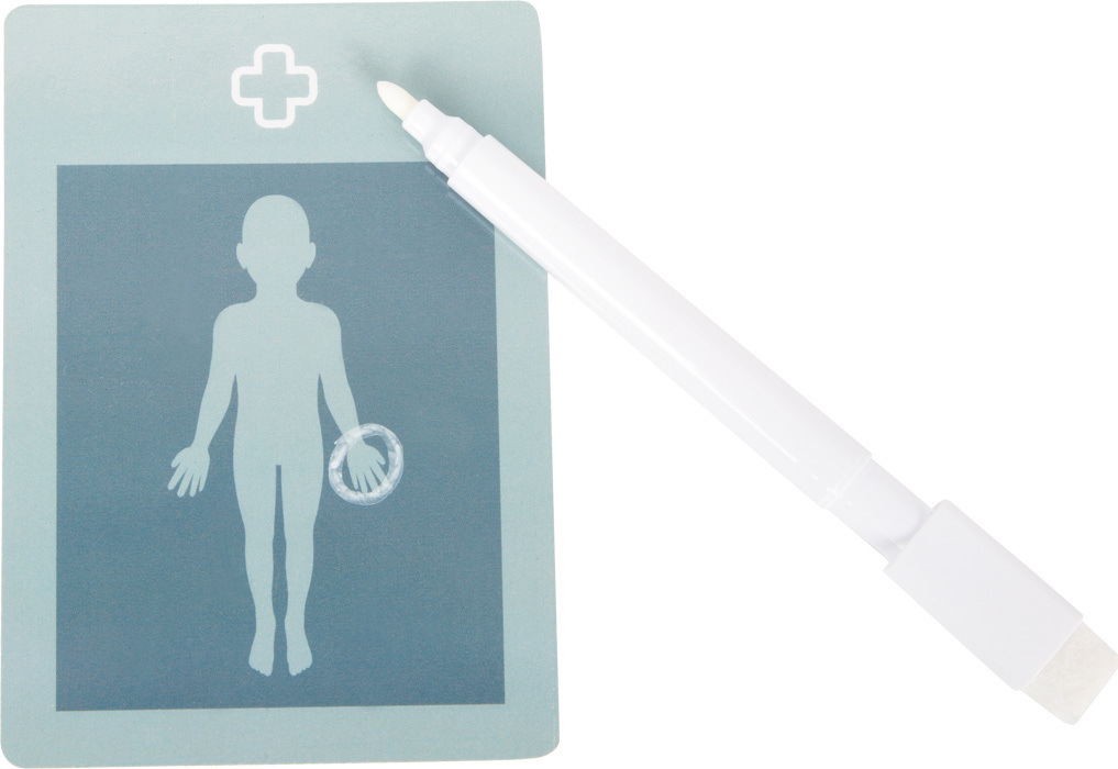 - lékařská taška s rozsáhlým zdravotnickým materiálem ze dřeva obsahuje: injekční stříkačka, teploměr, zapisovatelná karta včetně popisovače, stetoskop, obvaz, špachtle a pinzeta