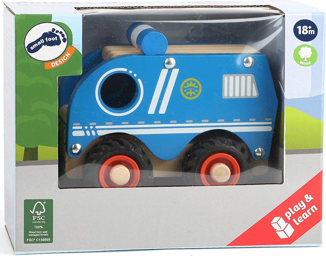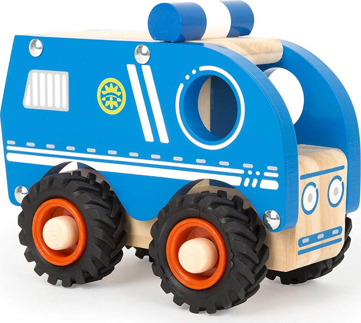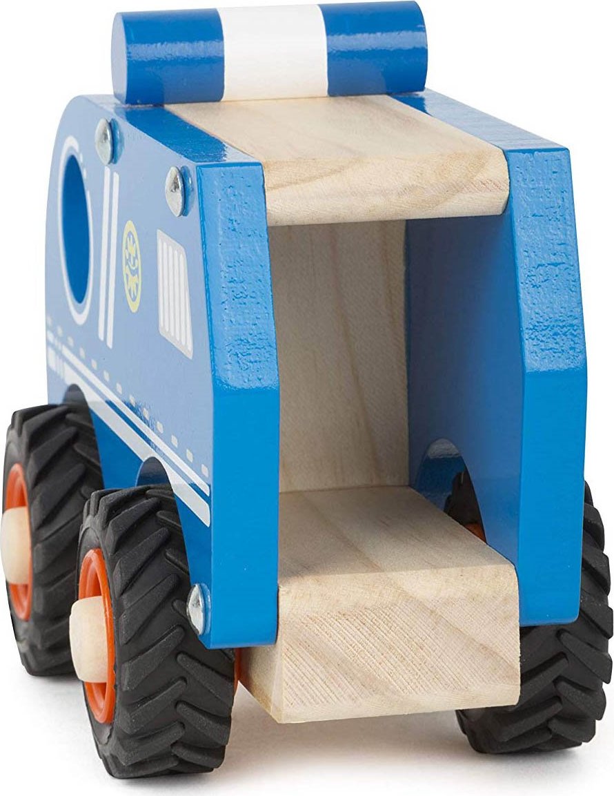 Dřevěné autíčko je vyrobeno z tvrdého masivního dřeva. Policejní vozidlo má gumová kolečka. Rozměry auta: cca 13 x 9 x 7 cm. Vhodné pro děti od 18 měsíců.