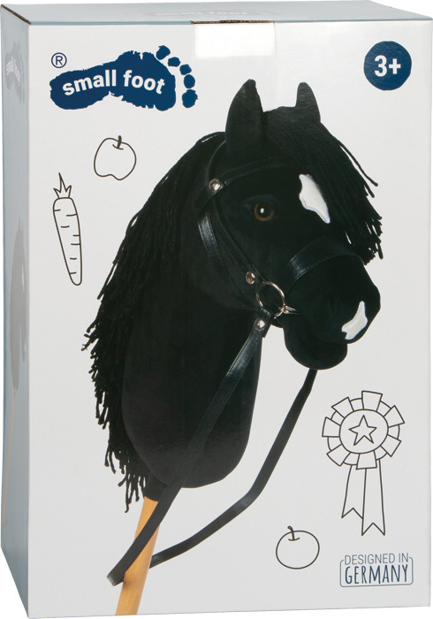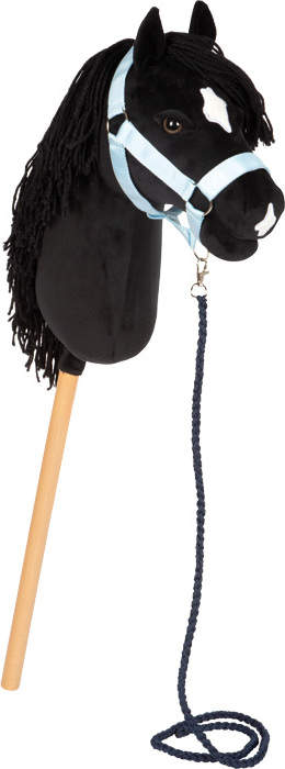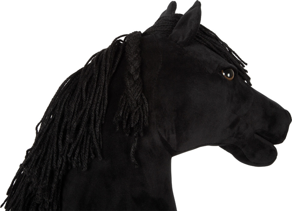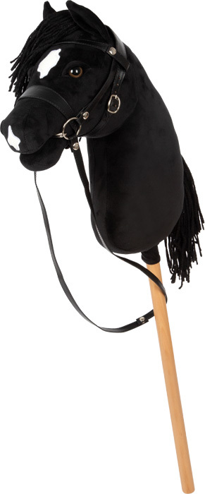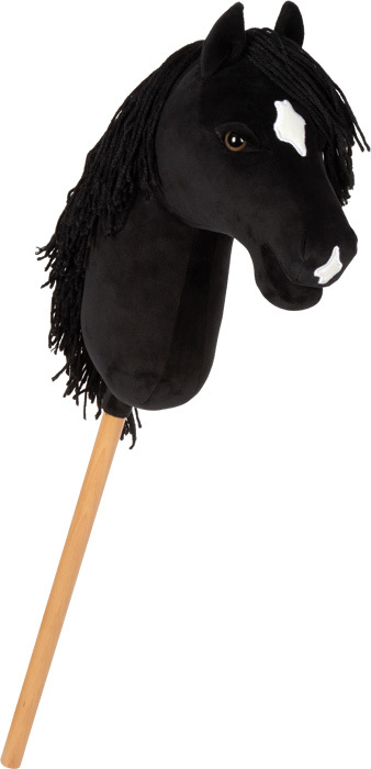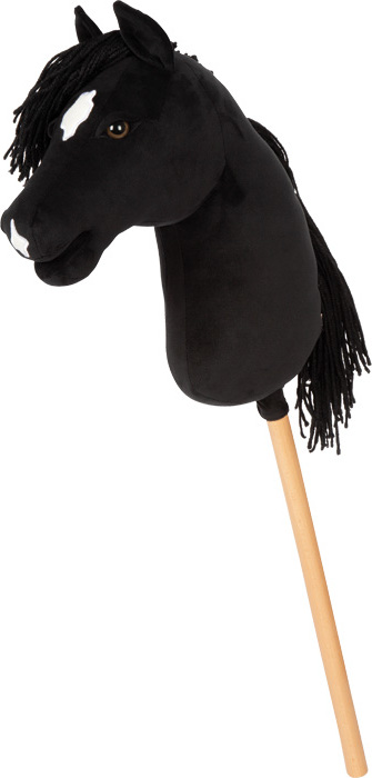 Připraven na velká jezdecká dobrodružství. Tento černý koník na tyči Hobby Horse je ideálním společníkem pro malé milovníky koní, kteří si chtějí hrát s fantazií a zároveň se aktivně hýbat. Inspirován klasickým koníkem na tyči, ale moderně zpracován – představuje aktivní zábavu při hobby horsingu, ať už při projížďce po zahradě, tréninku skoků v obýváku nebo na turnaji v parku. Koník má měkkou látkovou hlavu, hustou a snadno upravitelnou hřívu, pevnou tyč z masivního dřeva. Součástí je ohlávka, uzda a vodítko, které dodávají hře maximální autentičnost. Otevřená tlama umožňuje realistické nasazení udidla, jako u skutečného koně. Dřevěnou tyč lze jednoduše odšroubovat, což usnadňuje skladování i přepravu na další hobby horsingová dobrodružství. Tento všestranný jezdecký koník si již našel místo ve světě hobby horsingových soutěží i kreativních pohybových aktivit. Jako pohybová hračka je ideálním partnerem pro moderní sport Hobby Horsing a nadchne malé i velké jezdce.