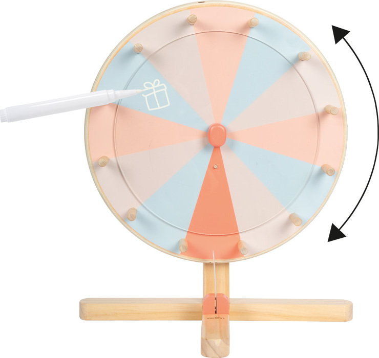 Speciální zábava s veverkou, ježkem, ptáčkem, myší, žábou, psem, kočkou a králíčkem kombinuje atraktivní design s mnohostranným využitím! Kolo štěstí je vyrobeno z robustního dřeva s plastovým popisovacím panelem a nabízí spoustu smíchu a vzrušení, ať už se používá ve školce, na dětské narozeninové oslavě či jen tak pro zábavu. Je dodáváno se dvěma vyměnitelnými kotouči s roztomilými motivy zvířat a s čísly od 1 do 12. Na plastový kotouč se dá psát a kreslit mazatelným fixem. Můžete jej využít jako tombolu, pro soutěže ve školce nebo jako zpestření dětské narozeninové oslavy. Díky jednoduchému ovládání a možnosti upravit si ho podle libosti, dělá z tohoto kola štěstí skvělý nástroj pro jakoukoliv příležitost. Kolo štěstí můžete doplnit dalšími hrami z produktové řady Garden Buddies, které nabízejí spoustu zábavy a pohybu.