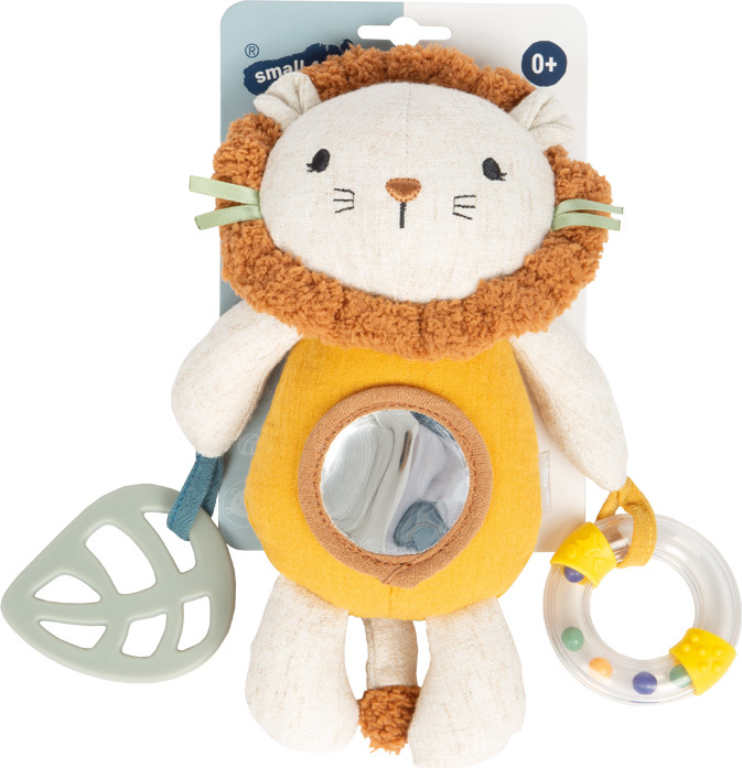 Mačkat, uchopovat, objevovat!Plyšová závěsná hračka Lvíček je všestranným společníkem pro miminka a batolata. Díky kombinaci kousátka, chrastítka a různých textur látek nabízí bohaté smyslové podněty a podporuje hravý rozvoj dítěte. Praktické závěsné poutko umožňuje snadné připevnění ke kočárku, autosedačce nebo na hrací hrazdičku. Měkká mušelínová látka, roztomilý lví obličej a příjemně mazlivý povrch dělají z této hračky oblíbeného společníka pro každý den.Tato multifunkční závěsná hračka v sobě spojuje senzorickou hračku, pomůcku při prořezávání zoubků i mazlivého kamaráda v jednom láskyplně navrženém produktu. Plyšový lvíček je vyroben z hebkého mušelínu, jehož jemně strukturovaný povrch stimuluje hmat a je příjemný i pro ty nejmenší děti. Různorodé materiály a integrované chrastítko vybízejí k dotýkání, poslouchání a objevování, zatímco kousátko poskytuje úlevu při prořezávání zoubků.