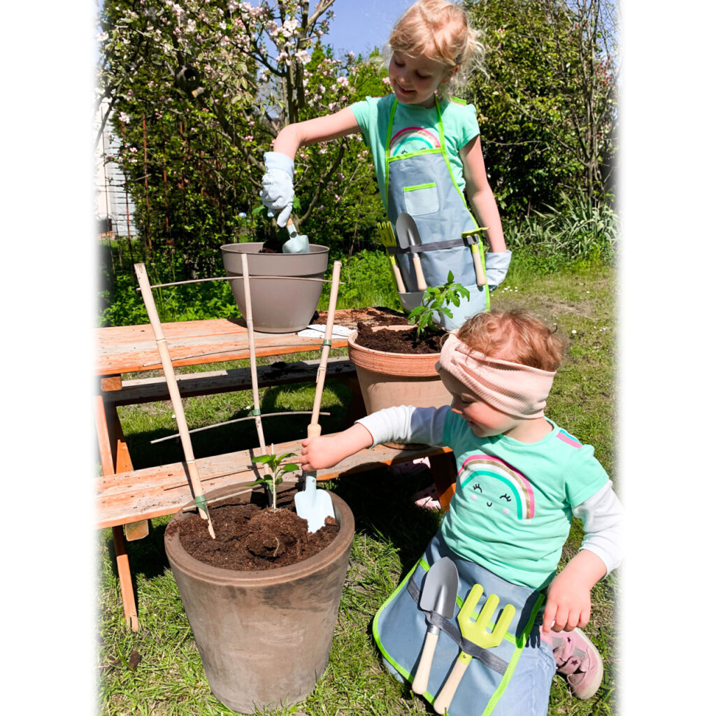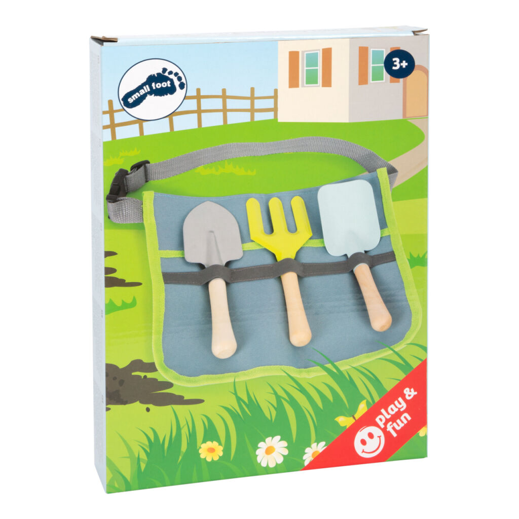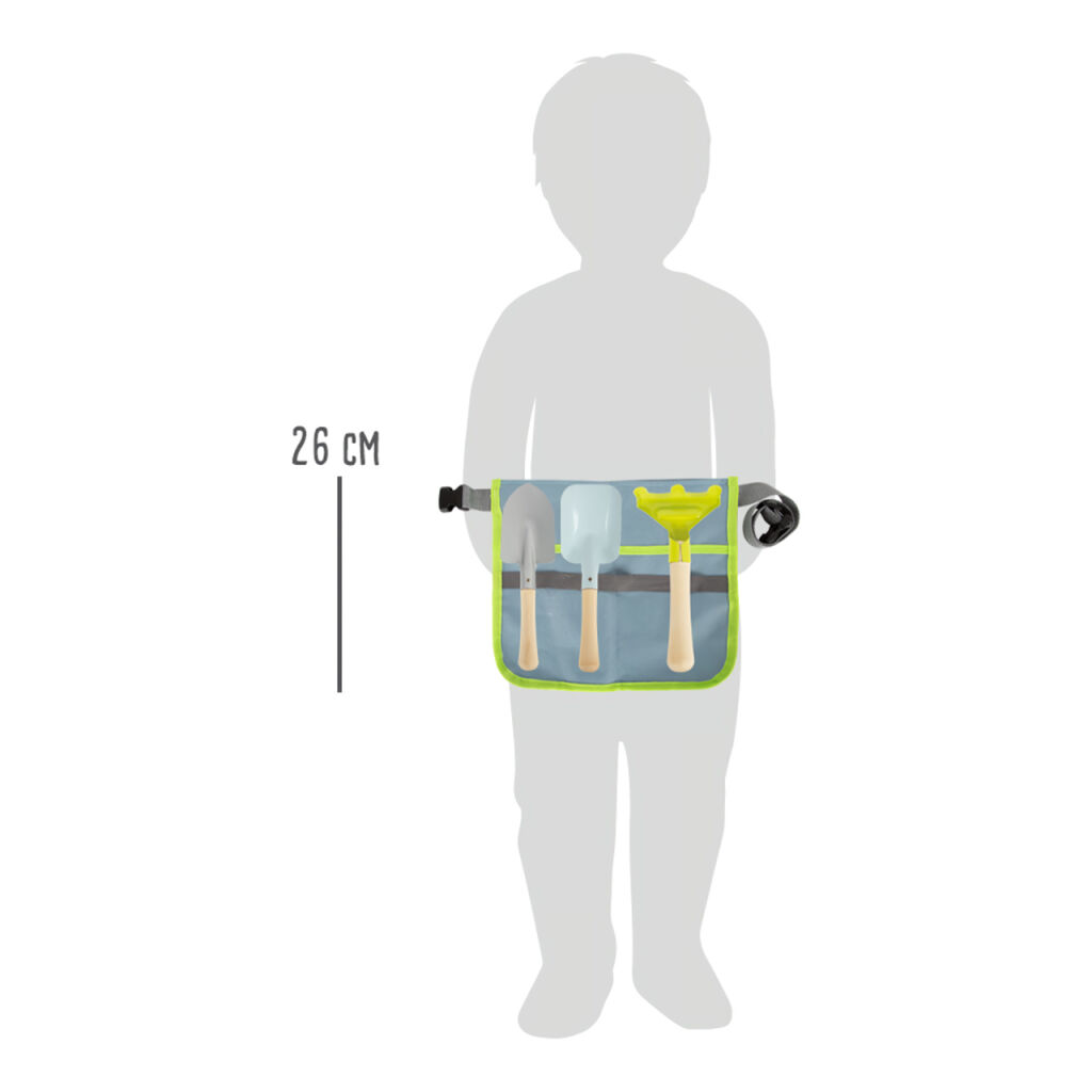 S touto ledvinkou na zahradní nářadí mohou mladí a začínající zahradníci opravdu pomáhat na zahradě a přitom mít volné ruce. Jednoduše si nasaďte snadno nastavitelný opasek s cvakací sponou a výsadba může začít! Lopata, hrábě a rýč jsou vyrobeny z kovu, mají velikost vhodnou pro děti a stabilní dřevěné rukojeti. Zábava na vlastní zahradě je zaručena! Hraní a výsadba podporuje aktivní hraní rolí a trénuje motorické dovednosti. Ideální doplněk.