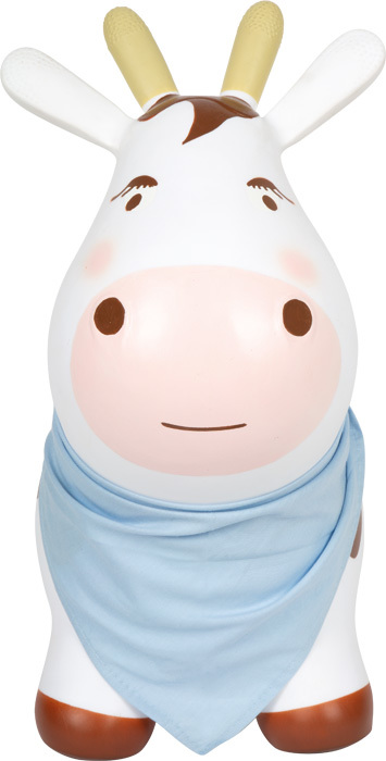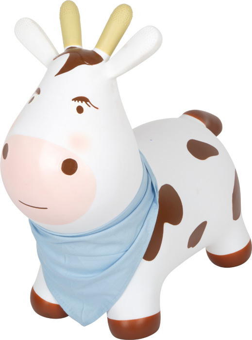Roztomilé nafukovací skákací zvířátko ve tvaru roztomilé kravičky přináší dětem spoustu pohybu a zábavy doma i venku. Díky svému milému designu a měkkému bavlněnému šátku si ho děti okamžitě zamilují. Zvířátko má praktické uchopitelné uši, které zajišťují bezpečné držení při skákání. Je vyrobeno z odolného, snadno omyvatelného materiálu. Součástí balení je pumpička pro jednoduché nafouknutí. S nosností až 50 kg a výškou sedáku přibližně 24 cm je ideální pro menší děti, které si chtějí užít aktivní pohyb. Skákací kravička zároveň pomáhá rozvíjet svaly zad, trupu a nohou a trénuje rovnováhu a koordinaci.