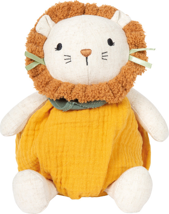 Stvořeno k mazlení!Tento roztomilý plyšový Lvíček je ideálním prvním kamarádem pro miminka a batolata. Hebký povrch, měkce polstrované tělo a dětem přizpůsobený design poskytují pocit bezpečí a pohodlí a zároveň podporují hravé objevování světa. Texturovaná mušelínová látka nabízí dětem zajímavý povrch, který láká k dotýkání, uchopování a přirozeně podporuje rozvoj smyslů i jemné motoriky. Ať už v postýlce, kočárku nebo na cestách, lví plyšák je vždy nablízku. Díky svému měkkému, polstrovanému provedení a příjemnému materiálu se plyšový Lvíček rychle stane oblíbeným společníkem v prvních měsících života dítěte. Kombinuje uklidňující mazlení s možnostmi smyslového vnímání a svou kompaktní velikostí skvěle padne do dětských ruček. Tato měkká hračka poskytuje pocit blízkosti, jistoty a stává se známým prvkem každodenních rituálů. Ideální pro hraní i jako promyšlený dárek pro nejmenší.