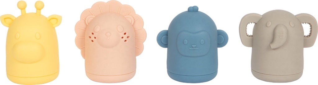 Tato čtyřdílná sada měkkých silikonových hraček přinese spoustu zábavy do vany, na pláž nebo ke stolku s vodní hrou. Roztomilí kamarádi – lev, slon, žirafa a opička – mají různé textury a detaily, a každé zvířátko stříká vodu trochu jinak. Děti tak při koupání zažijí spoustu překvapení a smíchu!Hračky jsou vyrobené z BPA-free silikonu a díky praktickému dvoudílnému provedení je lze snadno otevřít a usušit. Uvnitř nezůstává voda, takže nehrozí nepříjemný zápach ani plísně. Měkká zvířátka zaručují bezpečnou a veselou hru s vodou – kdykoli a kdekoli!