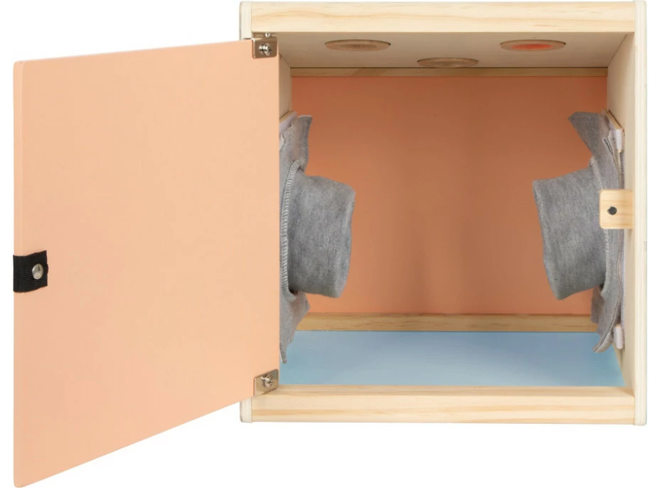 Zbystřete své smysly hravou formou. Tento prostorný senzorický a hmatový box z produktové řady "Sensory" se dvěma bočními otvory nabízí řadu možností pro objevování předmětů různými způsoby - dotykem, viděním, čichem a sluchem. Hračka byla navržená pro podporu rozvoje smyslů a motorických dovedností. Je vhodná i pro ergoterapeutické účely. Lupa, fazetová čočka a červená čočka umožňují nový pohled na předměty, které mají být prozkoumány uvnitř boxu. Tři dřevěné čočky lze snadno vyjmout. Otvory na horní straně lze pak použít k prohlížení, očichávání a poslouchání. Úhlem otevření zadních dvířek a horních výklopných klapek lze regulovat množství světla, které do boxu proniká. Dřevěný box lze plnit různými předměty přes zadní dvířka s magnetickou západkou. Látkové návleky na bočních otvorech zakrývají pohled dovnitř boxu a zároveň zajišťují příjemně měkký přístup. Velikostí jsou vhodné pro děti i dospělé. Vysoce kvalitní a zajímavý smyslový box v moderních barvách slibuje všestrannou a dlouhotrvající zábavu. Ať už se hraje jako paměťová hra, nebo jako hra na hledání, nebo jako hra na rozpoznávání – je to zajímavá, hmatová a smyslová hra, kterou lze hrát samostatně nebo s více hráči, pro ještě větší vzrušující zábavu. Rukávníky jsou připevněny pomocí suchých zipů, díky čemuž jsou odnímatelné, takže je lze prát v ruce na nízkou teplotu.