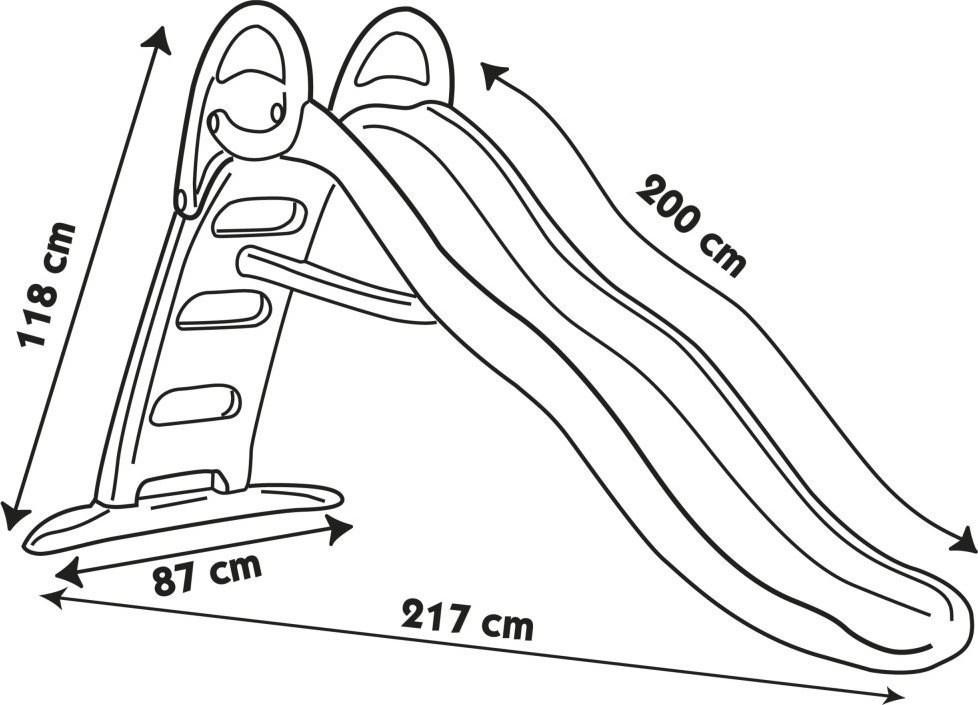 Rozměry skluzavky: 217 x 87 x 118 cm, délka skluzavky: 200 cm.