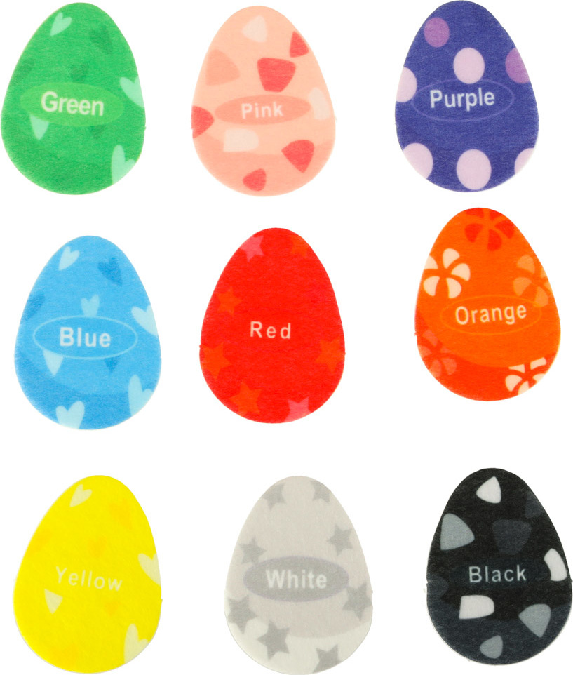 - Prvky připevnitelné suchým zipem: vajíčka různých barev