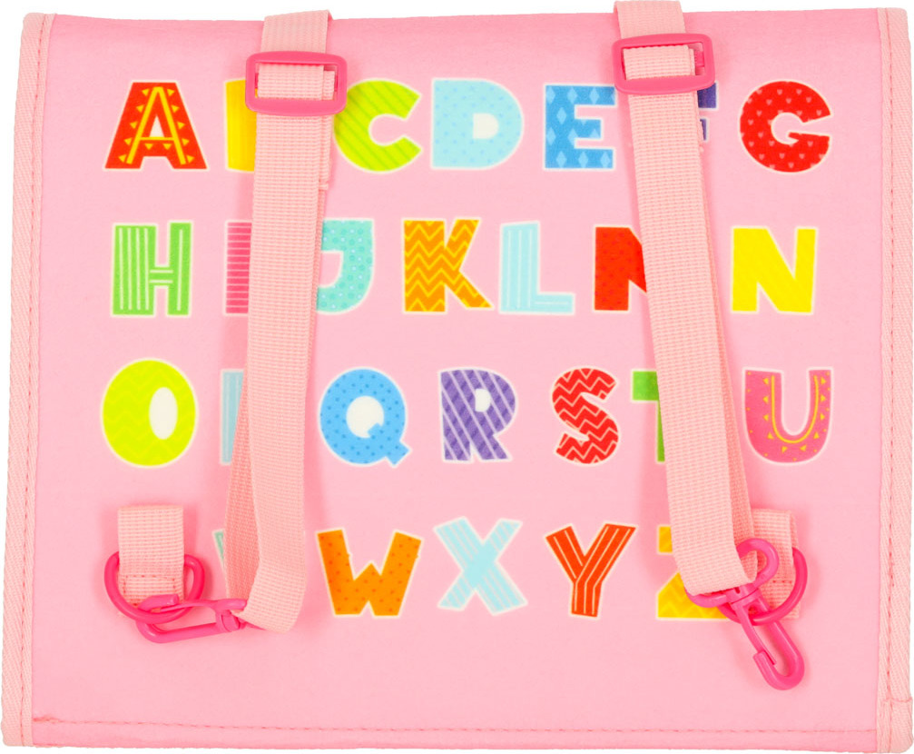 V blízkosti zadních popruhů je barevná abeceda - ideální pro učení písmen a rozpoznávání znaků