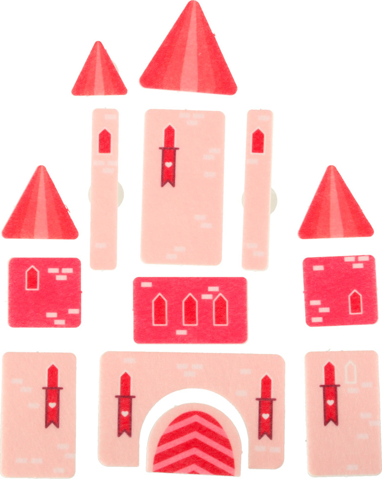 - Plstěné pozadí s vyobrazením princeznina hradu z geometrických tvarů