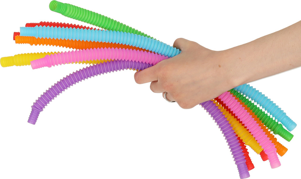Pop Tube – senzorická trubice, která si získala srdce dětí! A není divu, protože tyto zdánlivě obyčejné trubice v sobě skrývají tolik potenciálu! Osm senzorických trubic v různých barvách zaručuje hodiny zábavy. Dají se natahovat, rolovat, ohýbat a spojovat. Kombinace jsou nekonečné – jediným limitem je vaše fantazie! Po natažení trubice vydává zajímavý zvuk, který upoutá dětskou pozornost a stimuluje jejich sluch. A zajímavá textura trubic bude perfektním hmatovým podnětem! Natažená trubice měří ohromujících 41 centimetrů – což umožňuje i z jediné trubice vytvářet různé tvary, jako je srdce, čtverec, kruh nebo dokonce hvězda! Spojováním trubic lze vytvářet delší a propracovanější tvary! Tato sada senzorických trubic je také skvělou příležitostí k jedinečnému učení barev nebo počítání. Skládání trubic k sobě bude jistě výzvou! Hraní si s trubicemi je velmi zábavné, ale také zajišťuje správný vývoj. Vytváření nových, zajímavých tvarů s pomocí trubiček podporuje kreativní myšlení a uspořádání vymyšlených tvarů vyžaduje jemnou motoriku, kterou si vaše dítě bude moci procvičovat znovu a znovu!