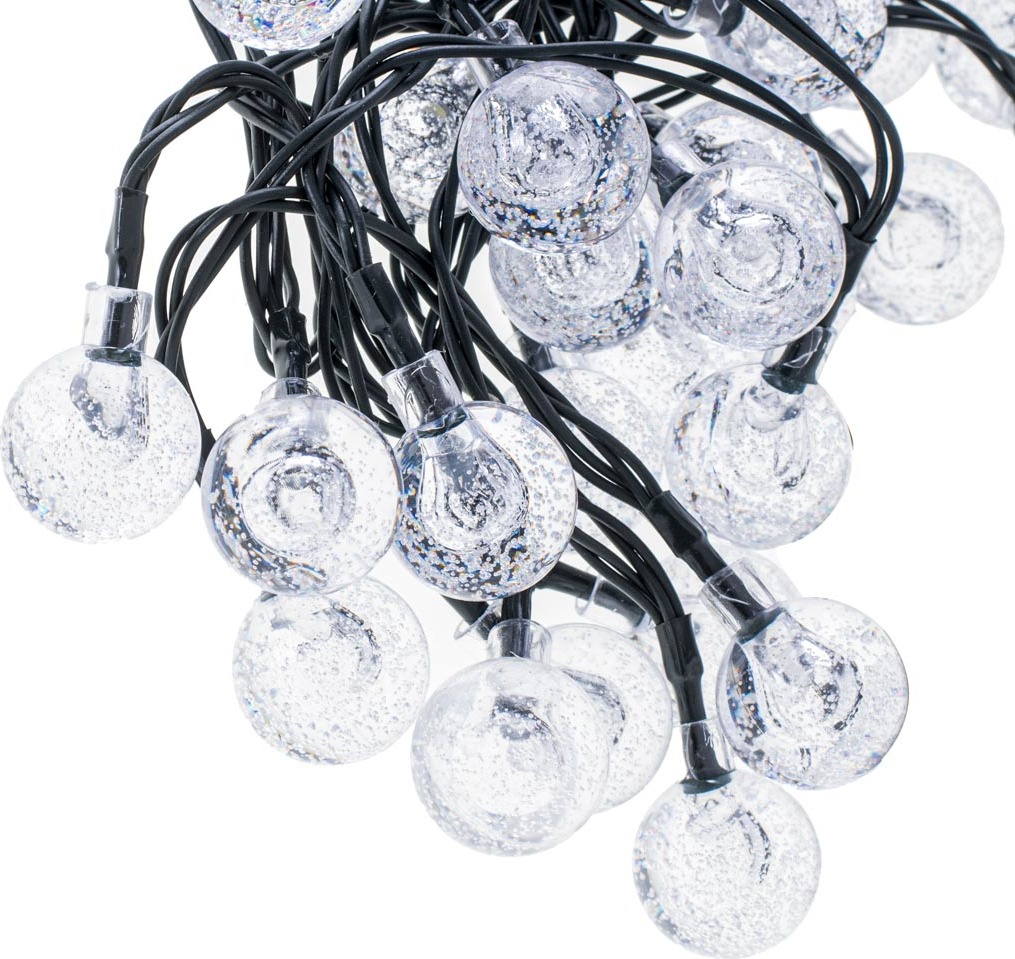 Délka celého výrobku je celých 7 metrů, z čehož napájecí kabel je dlouhý dva metry a část, kde jsou umístěny lampy, pět! Toto uspořádání 50 LED lamp umožňuje jejich montáž kamkoli! Závěsné lampy se postarají o jedinečnou atmosféru ve vašem altánu nebo na terase! Můžete je také použít k vytvoření zajímavého solárního osvětlení cest. Jedinečný design v podobě jemných koulí zahřeje atmosféru. Tyto dekorativní solární lampy svítí teplým bílým světlem a poskytují příjemné osvětlení vaší zahrady, kde budete každý večer odpočívat. Mají 8 režimů provozu, takže jistě dokonale zareagují na vaše potřeby!