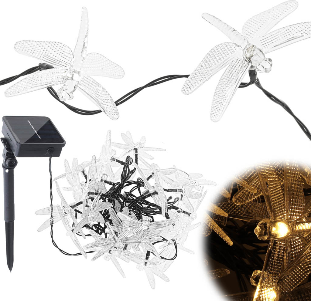 Solární zahradní osvětlení VÁŽKA - 6,5 m 30LED - teplá bílá