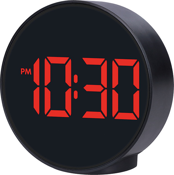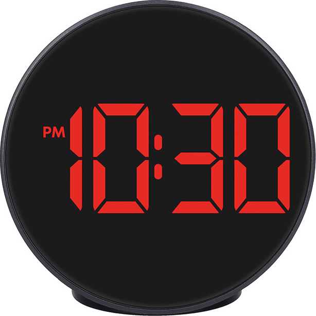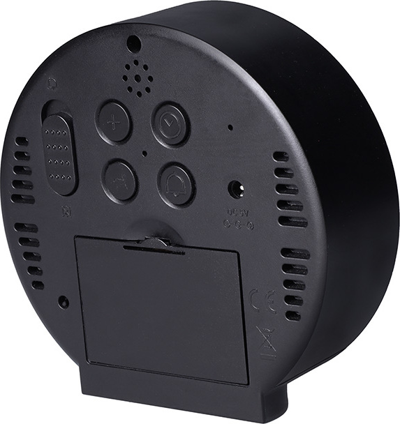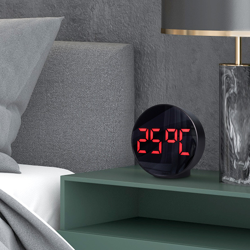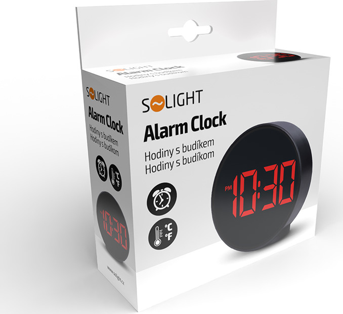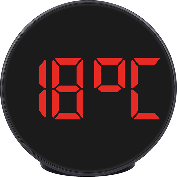Digitální budík s LED displejem a teploměrem. Tento moderní budík zobrazuje čas a teplotu na LED displeji s možností přepínání mezi jednotkami °C/°F. Disponuje třemi úrovněmi jasu a nočním režimem, který automaticky snižuje jas během nastaveného časového intervalu. Jednoduché nastavení budíku s možností jeho vypnutí zajistí pohodlné používání. Napájení 3× AAA bateriemi nebo přes DC 5V.