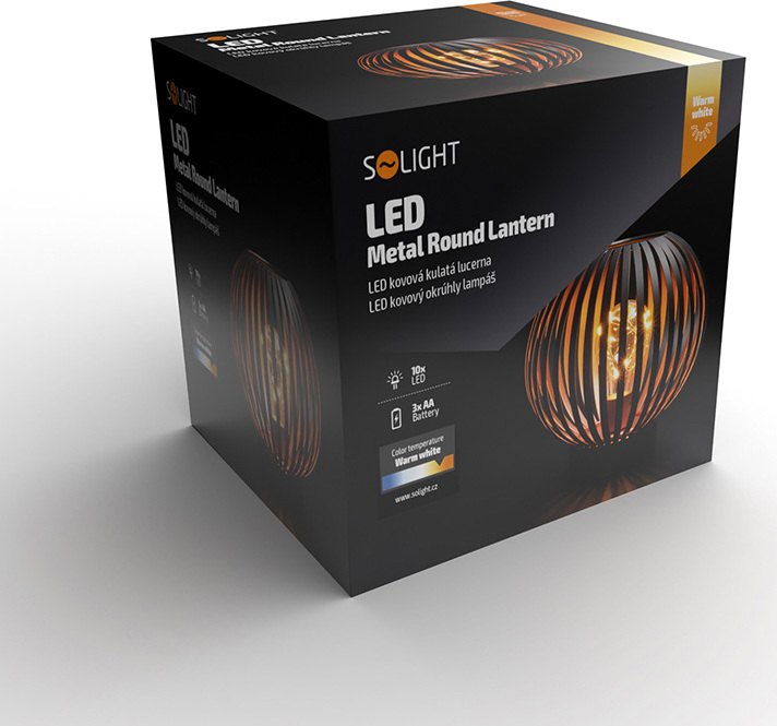 Solight kovová kulatá lucerna se žárovkou s micro LED, teplá bílá, měděná, 3xAA, 19cm