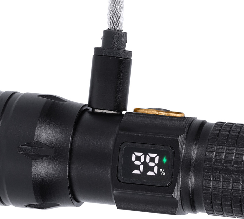 Výkonná, kompaktní a praktická – taková je nabíjecí LED kapesní svítilna s displejem, která zobrazuje aktuální stav baterie v procentech. Díky světelnému toku 200 lm je ideální pro každodenní použití, cestování, turistiku či nouzové situace. Uživatel má k dispozici tři režimy svícení – 100 %, 50 % a blikání – které se snadno přepínají pomocí jednoho tlačítka.