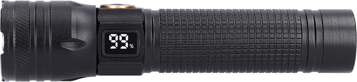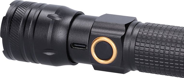 Svítilna je vybavena zoomem pro nastavení světelného kuželu a napájena integrovanou Li-Ion baterií s kapacitou 1200 mAh (3,7V), která se dobíjí přes moderní USB-C konektor (doba nabíjení cca 4 hodiny). Její provozní doba činí až 2 hodiny v úsporném režimu. Díky stupni krytí IP44 je odolná proti vlhkosti a prachu, takže ji lze bezpečně používat i v náročnějších venkovních podmínkách. Kompaktní rozměry (135 × 33 mm) a černý design s praktickým displejem z ní dělají skvělého společníka na cesty i pro domácnost.