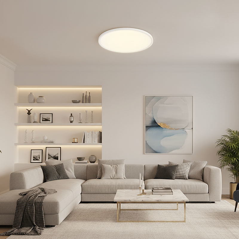 Montáž je flexibilní – světlo lze instalovat přímo na strop nebo zavěsit pomocí instalačního setu, který je součástí balení. Panel má vysoký index podání barev (CRI > 80), úhel svícení 120° a dlouhou životnost LED až 20 000 hodin. Designové provedení v bílé barvě a kompaktní rozměry 500 × 27 mm doplňuje elegantní vzhled celého interiéru. Díky hodnotě UGR < 19 panel zároveň eliminuje nežádoucí oslnění a vytváří příjemné pracovní nebo odpočinkové prostředí.