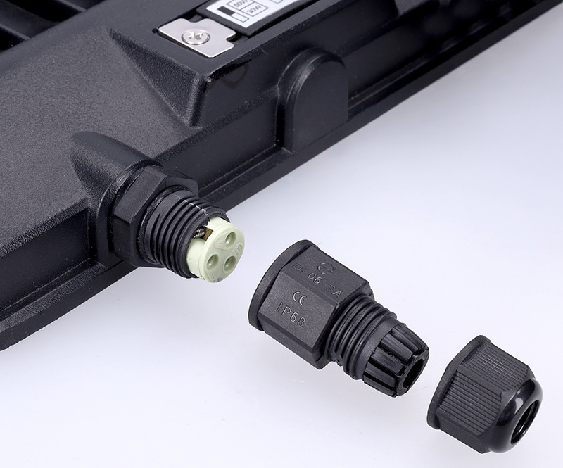 Díky širokému úhlu svícení 120° a vysokému indexu podání barev (CRI > 80) reflektor zajistí rovnoměrné a přirozené osvětlení. S krytím IP65 je plně odolný proti vodě a prachu, což umožňuje bezpečné venkovní použití. Instalace je velmi snadná díky voděodolnému konektoru. Životnost LED diod činí 25 000 hodin, provozní teplota se pohybuje od -20°C do +50°C. Rozměry 192 × 146 × 30 mm a robustní hliníkové tělo v černé barvě podtrhují jeho profesionální charakter.