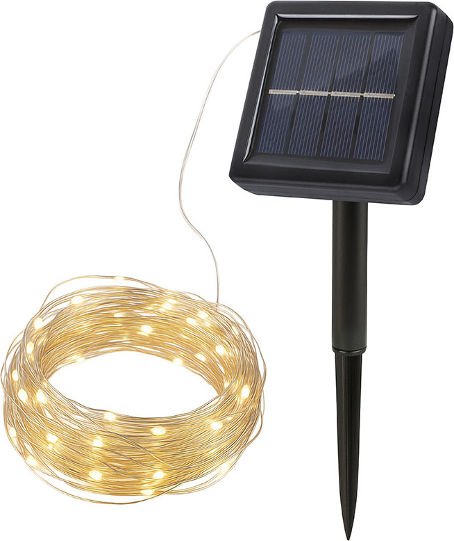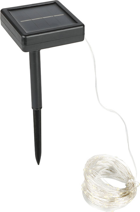Řetěz je napájen Li-Ion baterií (3,7V, 800mAh), která se během dne dobíjí pomocí solárního panelu o rozměru 79 × 79 mm. Doba nabíjení činí přibližně 9 hodin v závislosti na světelných podmínkách. Automatická aktivace senzoru nastává při osvětlení nižším než 10 lux, což zaručuje jeho spolehlivou funkci i při slabém denním světle. Řetěz je chráněn krytím IP44, což jej činí odolným proti vlhkosti a vhodným pro venkovní použití. Černé provedení stylově ladí s různými exteriéry i dekoracemi.