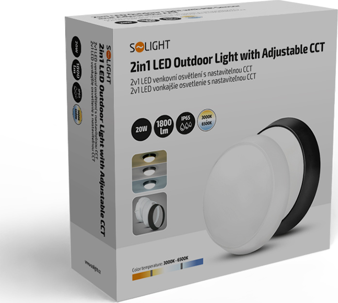 Solight LED venkovní osvětlení, nastavitelná teplota světla - 3CCT, 15/18/20W, 1800lm, 22cm, 2v1 - bílý a černý kryt